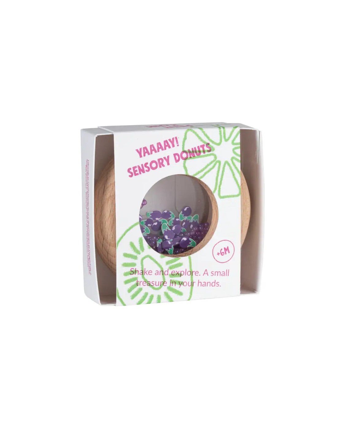 El nuevo juguete sensorial encantará a lxs peques más golosxs. Es un sonajero de madera con forma de donut, ideal para que sus manos lo manipulen con comodidad. En su interior, podréis identificar figuras de frutas y verduras, que al agitarse desatan el irresistible sonido marca de la casa. Aunque apetece comérselo, está hecho de madera de haya natural, libre de tóxicos y a prueba de mordiscos.
