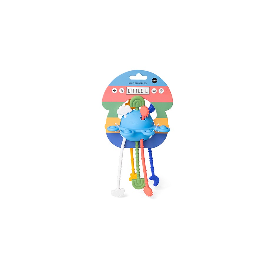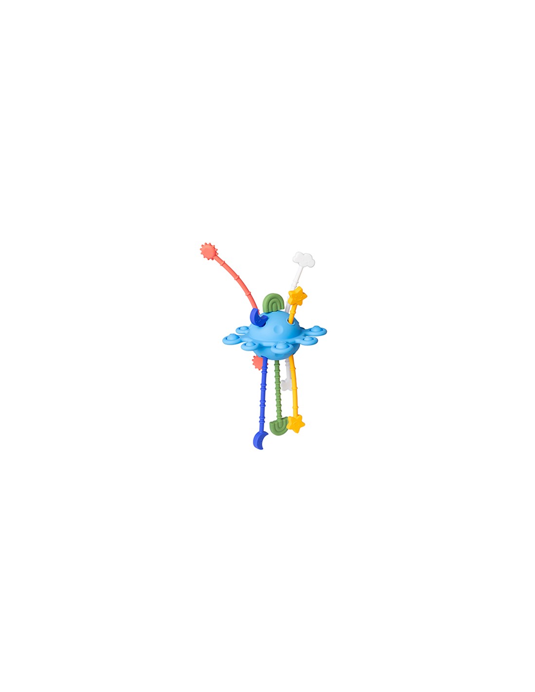 Los mangos fáciles de agarrar proporcionan un buen agarre, promoviendo la destreza manual y la coordinación mano-ojo. Este juguete también estimula los sentidos auditivos y táctiles. Al tirar de los cordones en una dirección u otra, lxs niñxs experimentan una variedad de sonidos y vibraciones, descubriendo así nuevas sensaciones. El planeta está rodeado de “Pop Its” que lxs niñxs pueden presionar. Lxs peques pueden morder este juguete de silicona suave y flexible de forma segura. Se puede lavar en el lavavajillas a baja temperatura.
