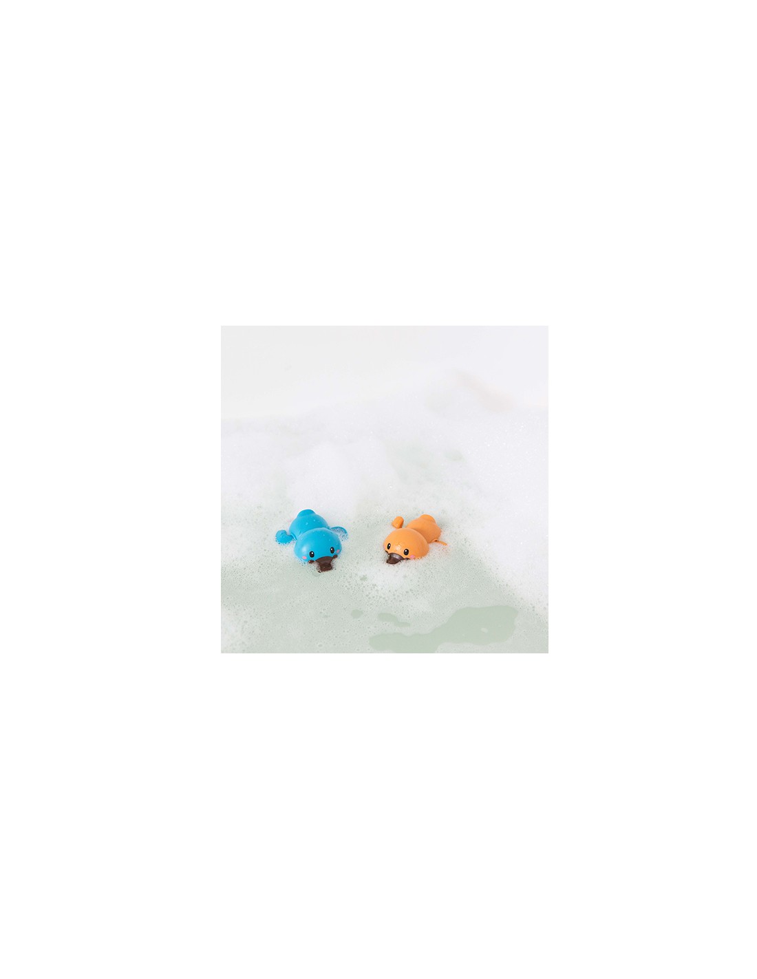Dos adorables ornitorrincos listos para nadar en un solo juego y no requieren pilas, simplemente dales cuerda, suéltalos en la bañera y luego observa cómo los pequeños brazos del ornitorrinco giran mientras corren por el agua.