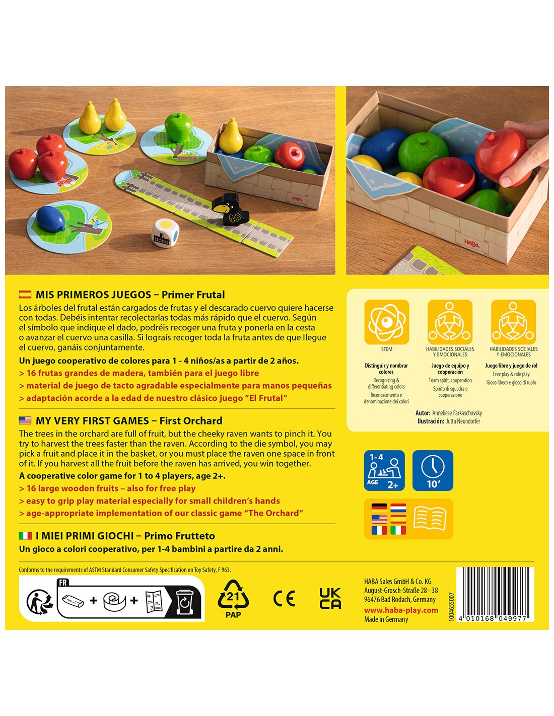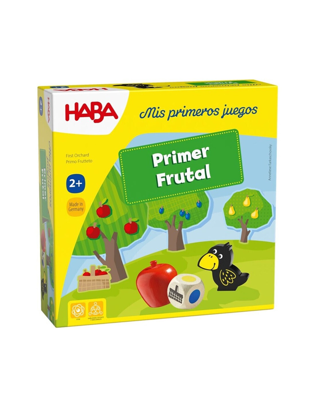 Nuestro clásico 'El Frutal' ahora para los más pequeños/as. El objetivo del juego es recolectar las frutas entre todos/as antes de que el cuervo Teo recorra el camino y llegue hasta los árboles. Las piezas grandes de madera invitan también al juego libre