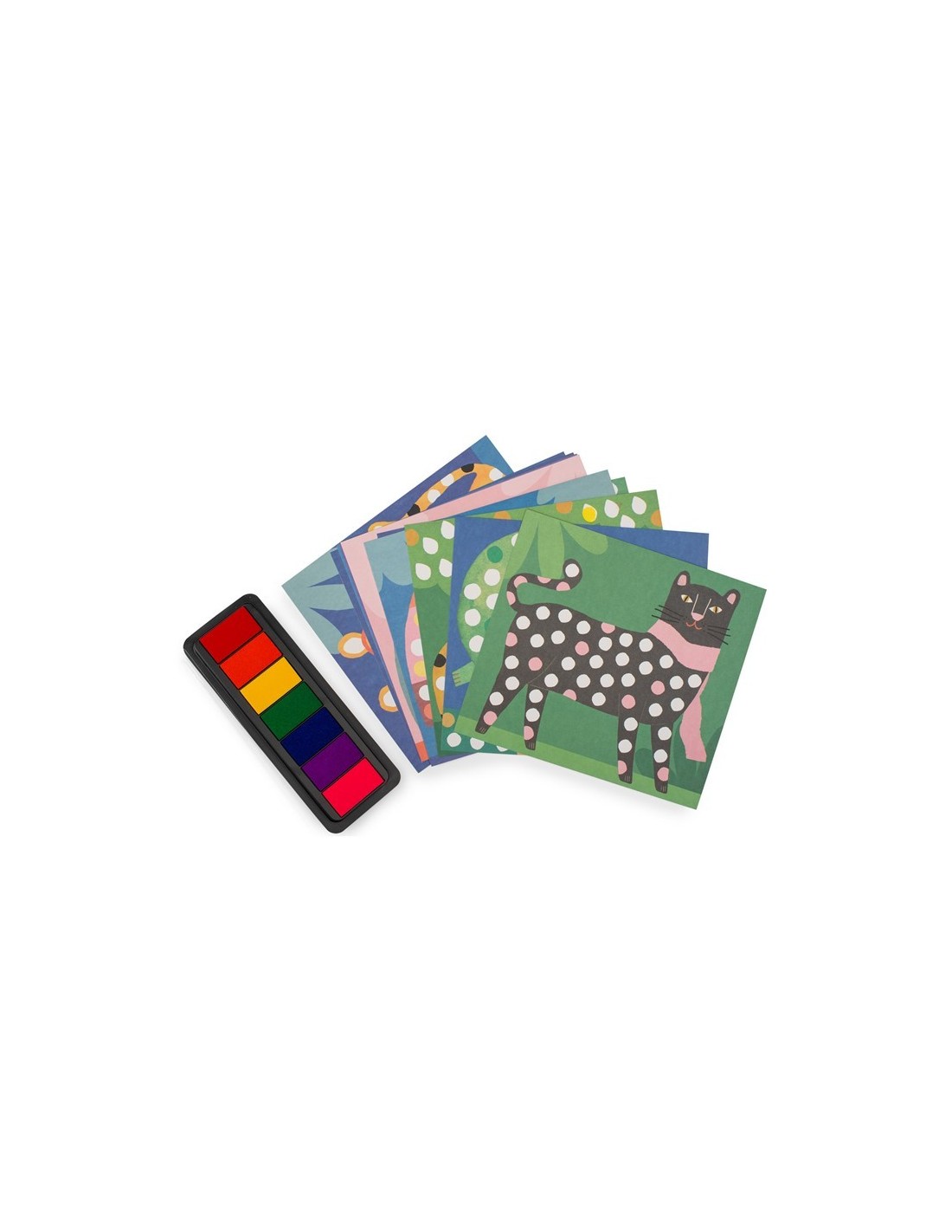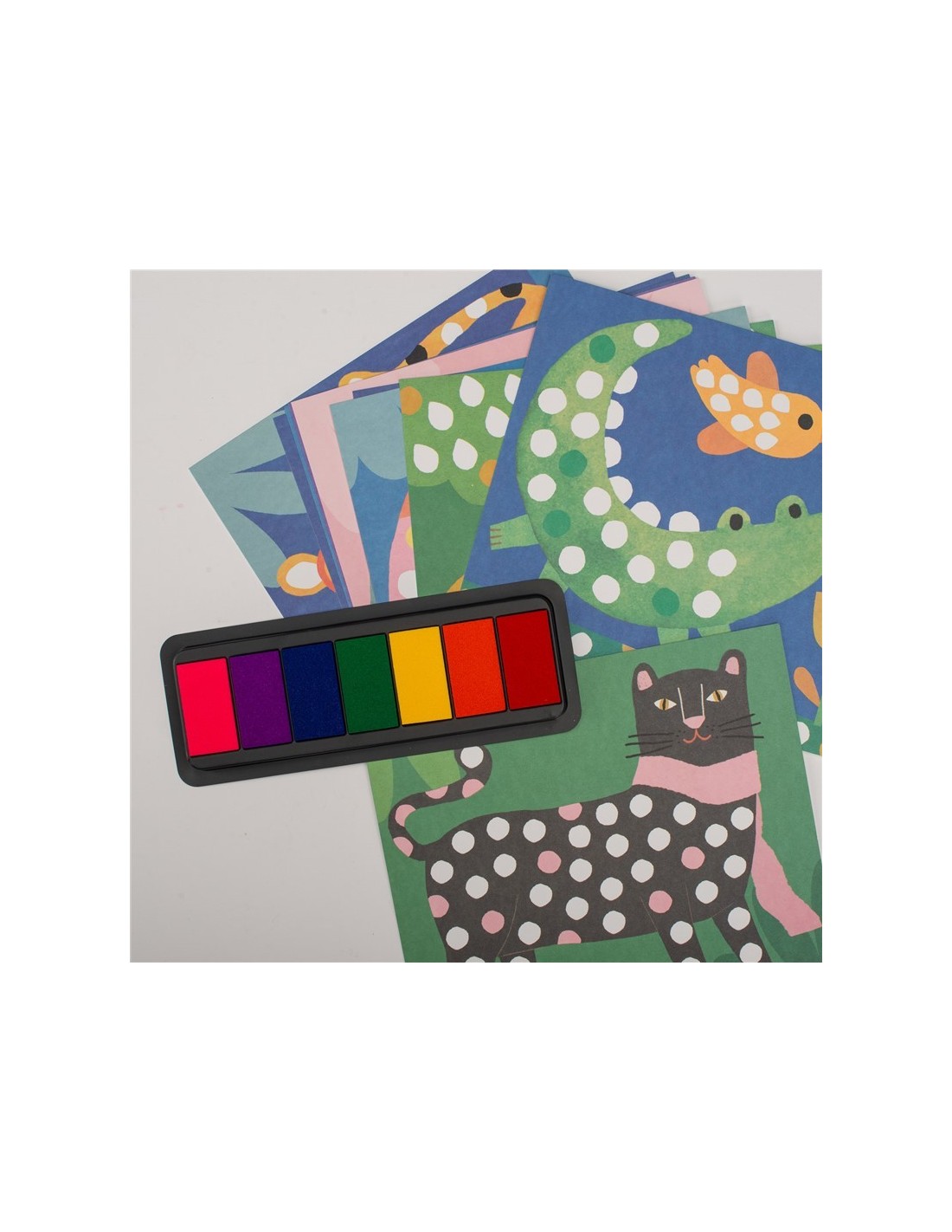 10 ilustraciones y 7 tampones para pintar con los dedos!