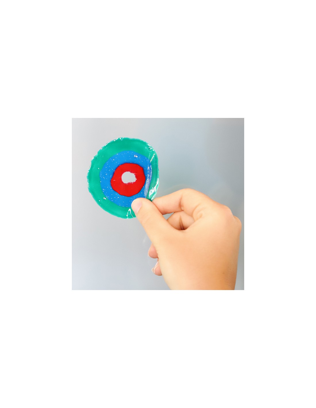 Es una emulsión acrílica coloreada de alta calidad para crear formas reposicionables. El color se extiende con el dosificador del frasco y, una vez seco, da vida a formas que se pueden adherir a cualquier superficie. Al extender el color sobre una hoja transparente, puedes trazar un diseño subyacente a tu gusto. Los colores se pueden mezclar con la ayuda de un palillo: los resultados obtenidos son siempre muy intensos, transparentes y brillantes. Una vez seco, el color no es lavable.