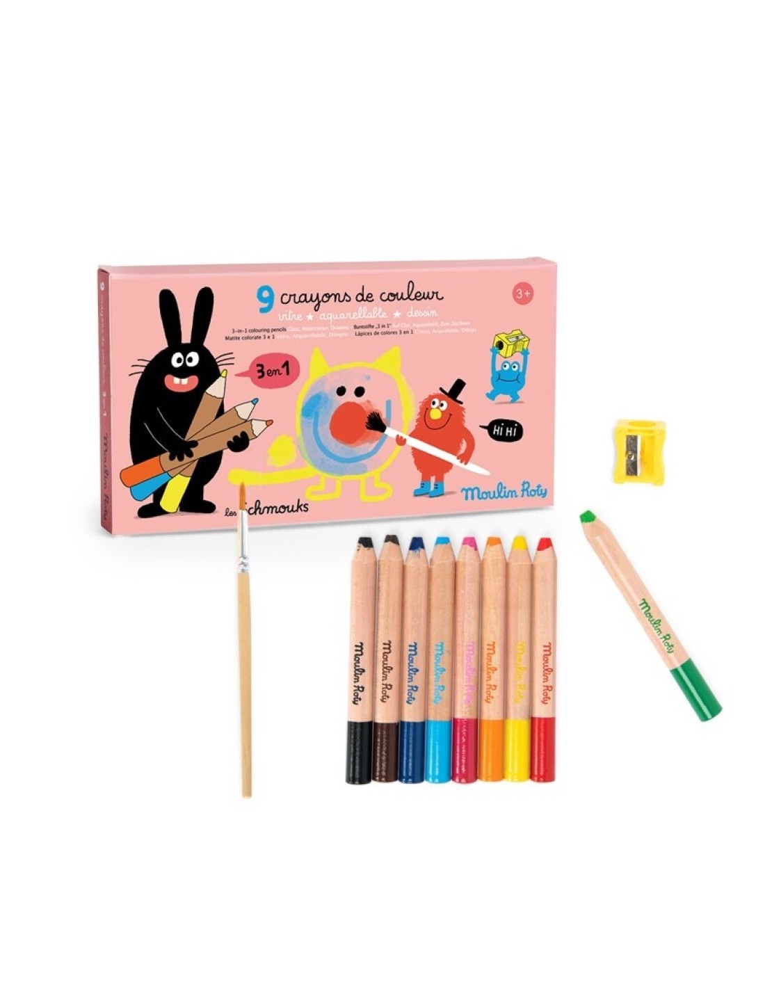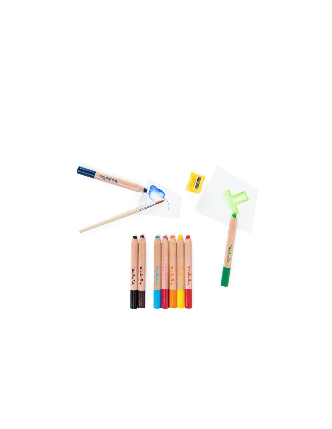 9 lápices de colores 3 usos distintos! Para usar en vidrio o superficies no porosas, en papel normal o acuarelables.