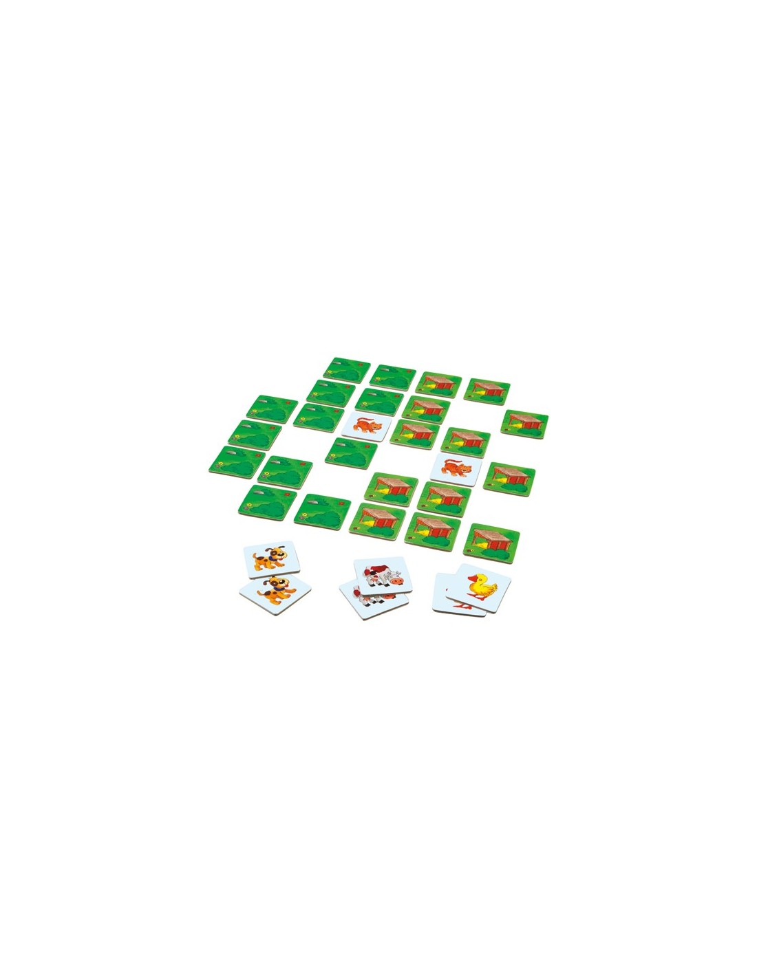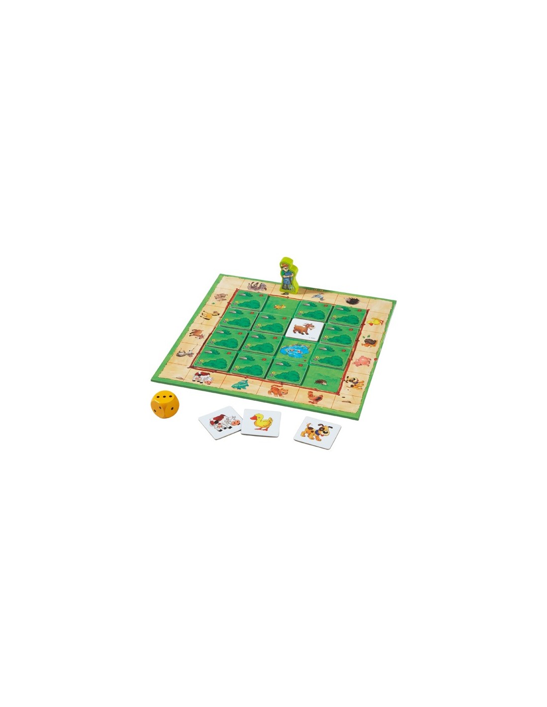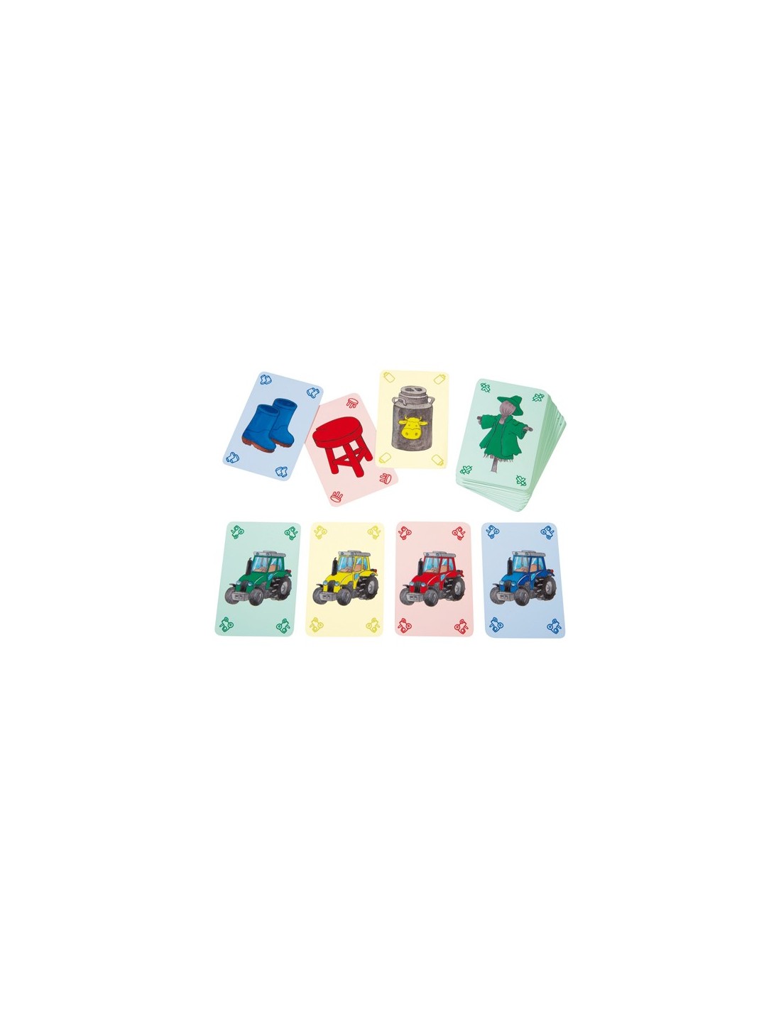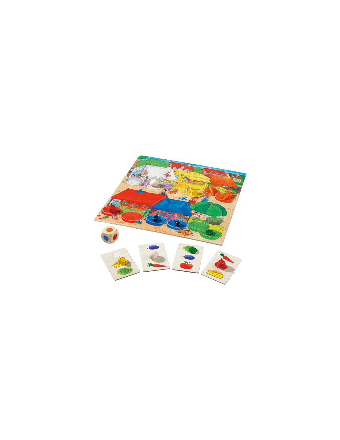 Contiene 3 caballos, 3 vacas, 3 cerdos, 3 ovejas, 2 manzanas rojas, 2 ciruelas, 2 huevos, 2 pedazos de queso, 2 hojas de lechuga, 2 zanahorias, 1 campesino, 1 dado de puntos, 1 dado de colores, 9 estrellas, 1 luna y las instrucciones de los juegos.