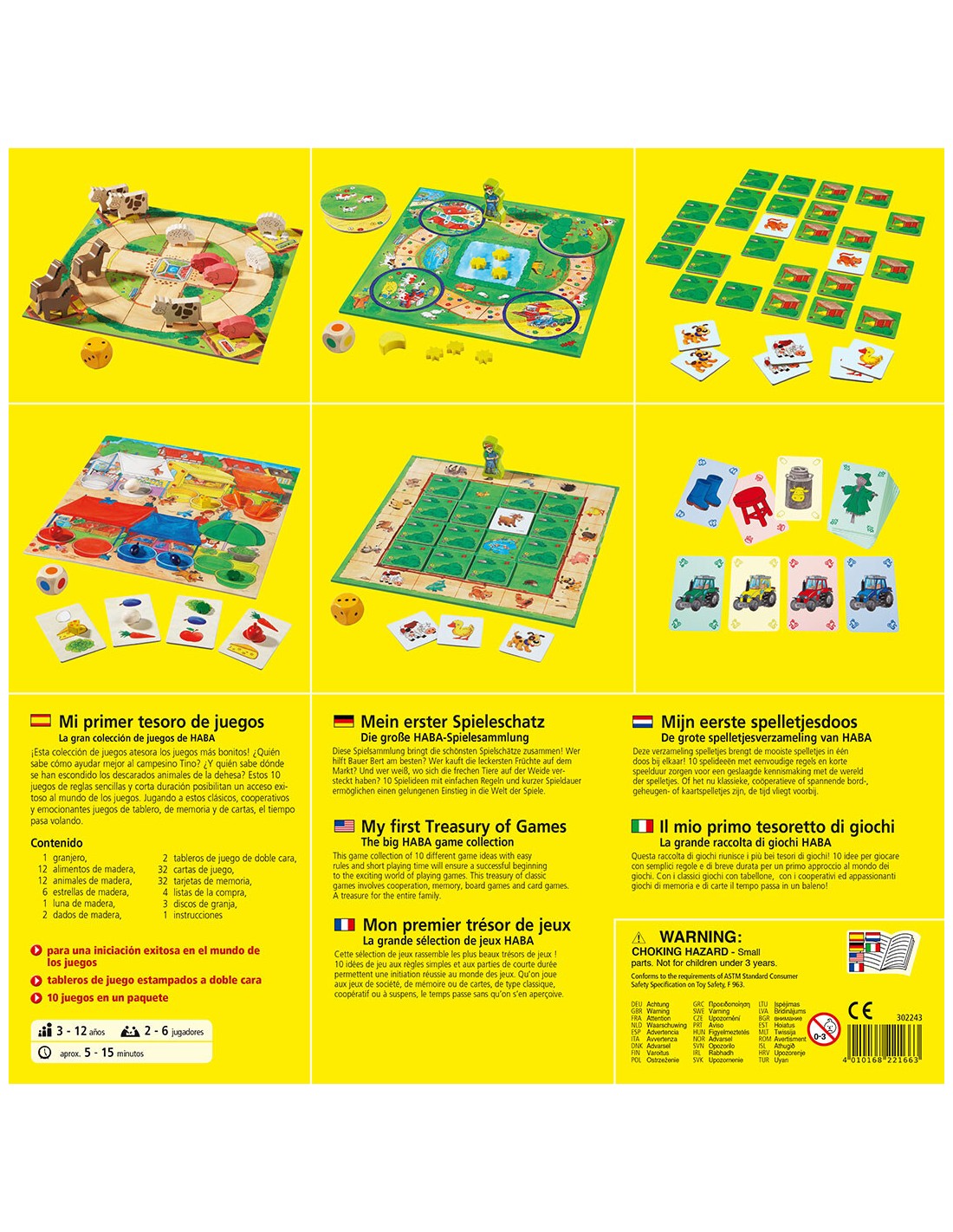 Diez juegos de reglas sencillas y corta duración entre los que se encontramos juegos clásicos, cooperativos, juegos de tablero, de memoria y de cartas. Tableros de juego a doble cara, y amplio material de juego de madera.