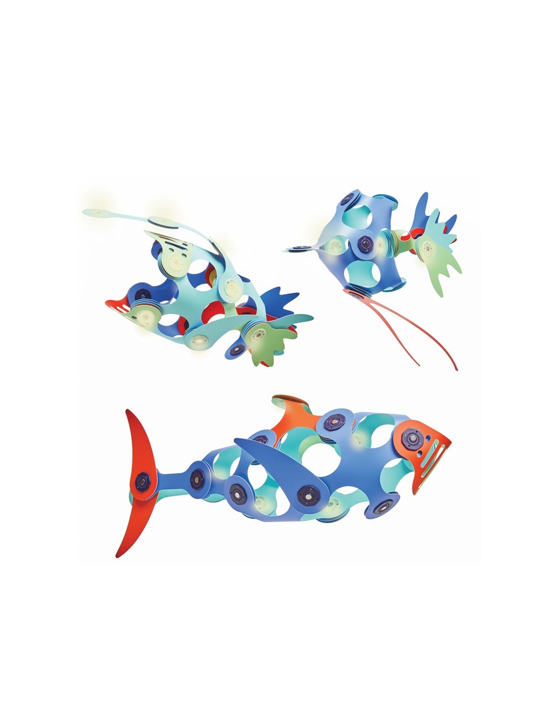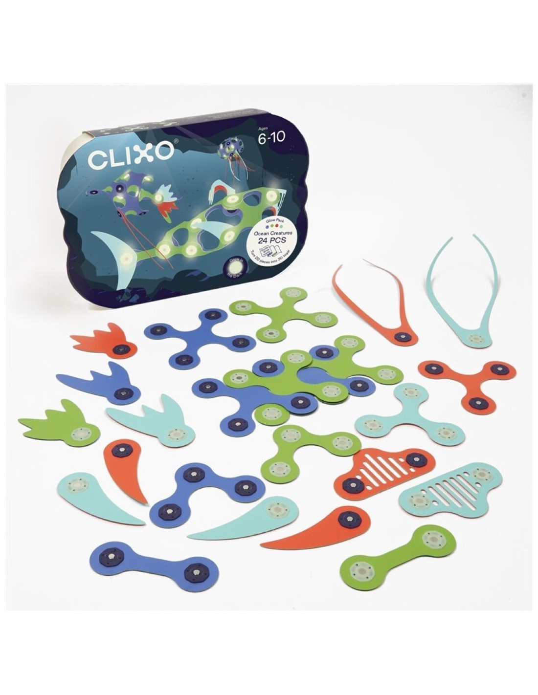 El pack Ocean Creatures contiene piezas nuevas y especiales. Aletas y tentáculos de CLIXO que brillan en la oscuridad dan vida a las maravillas submarinas. Lleva la inspiración creativa a lo más profundo, fomenta el aprendizaje STEAM y crea infinitas criaturas submarinas. El pack contiene 24 piezas en 9 formas únicas de CLIXO.