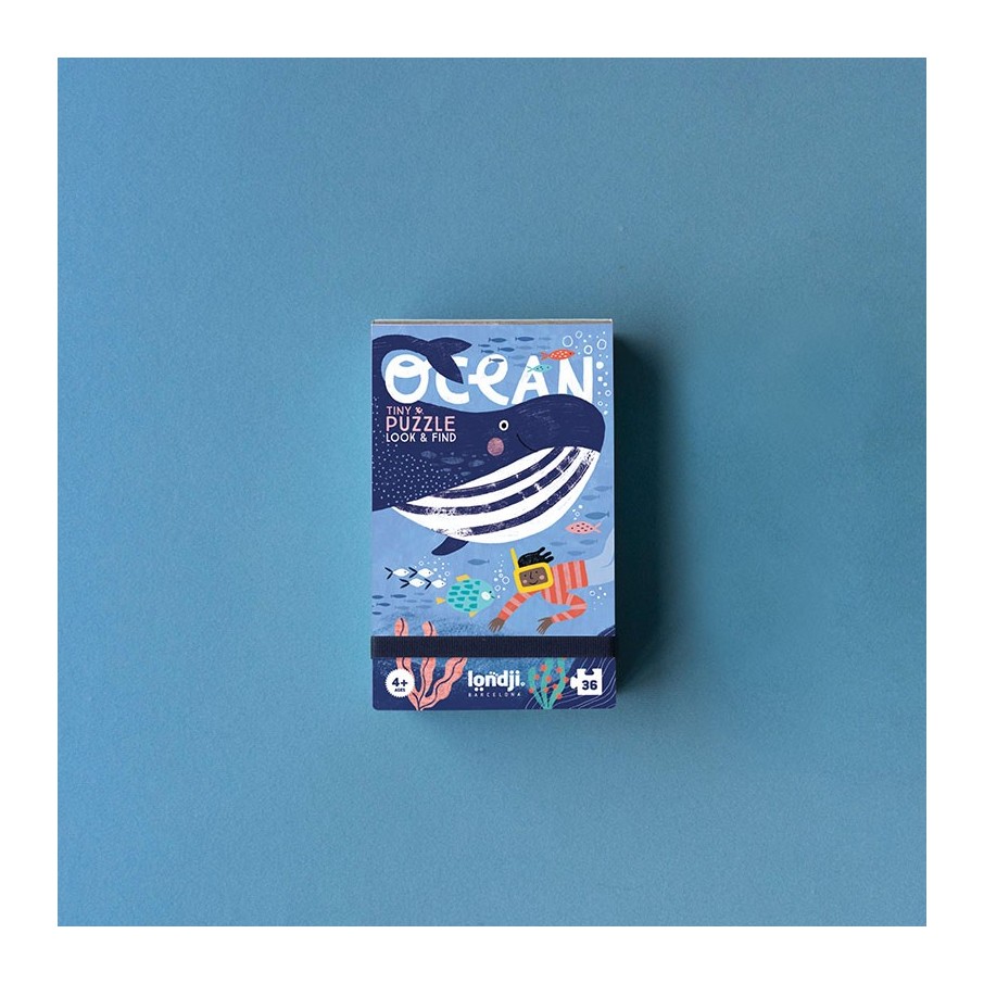 Un puzzle pequeño de 36 piezas que incluye 12 fichas de observación sobre el océano. Un juguete educativo y sostenible. De formato bolsillo, ideal para viajes. No incluye expositor.![]()