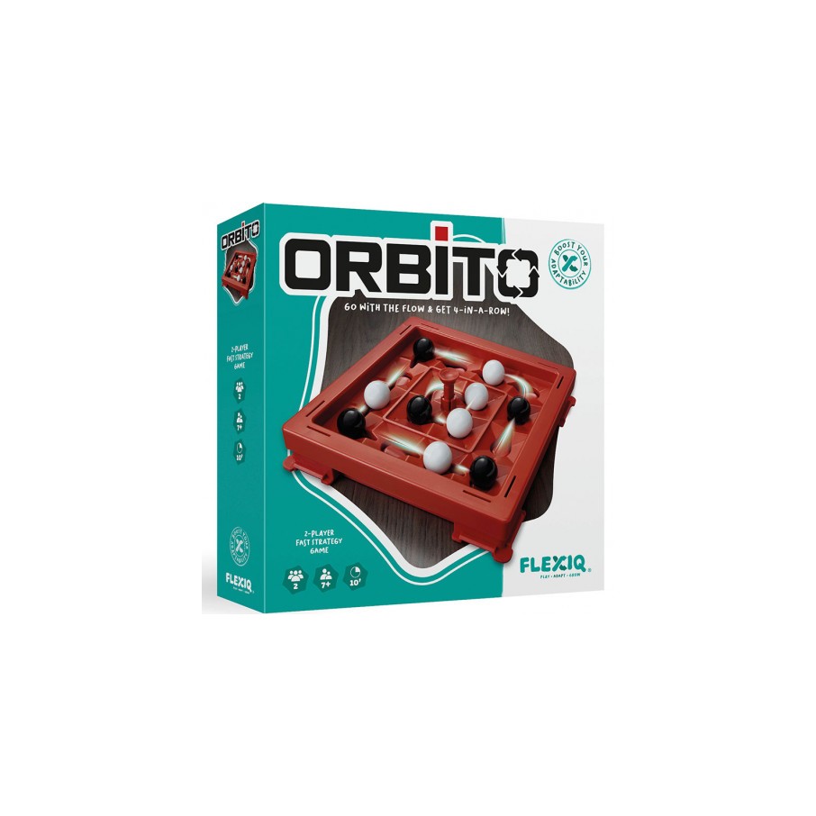 Intenta conseguir 4 canicas de tu color en una línea horizontal, vertical o diagonal. Por turnos los jugadores/as añaden 1 canica al tablero y pulsan el botón Orbito que hace mover las canicas una posición. Antes de colocar la canica se puede mover una de las canicas del oponente a un espacio libre en cruz.