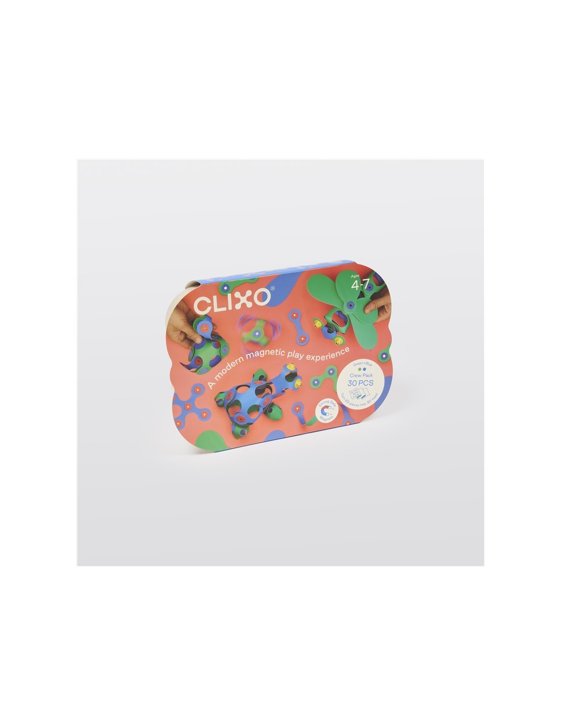 El pack Crew ofrece una avalancha de posibilidades creativas, desde molinillos hasta hélices. Contiene 30 piezas en 8 formas únicas de CLIXO, incluidas 3 "spinners" para poder construir creaciones que giren sobre sí mismas.
