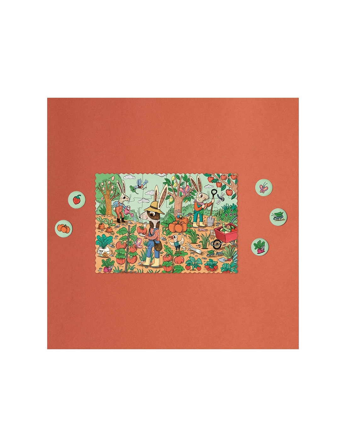 Una vez montado el puzzle, nos divertiremos buscando todos los detalles de su huerto.
