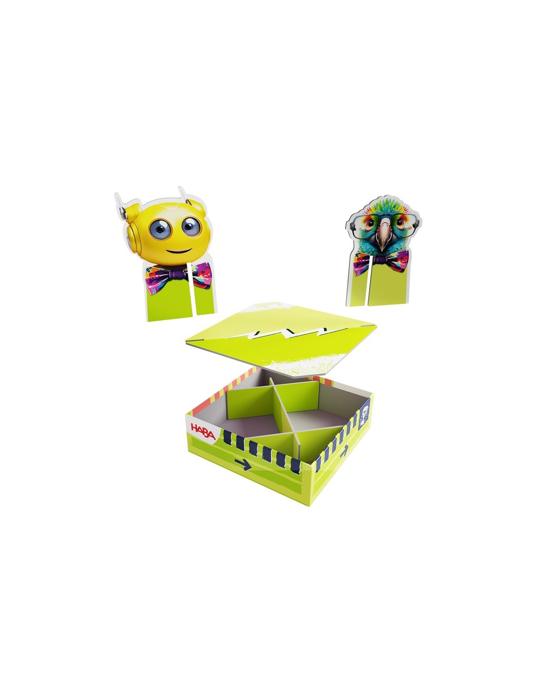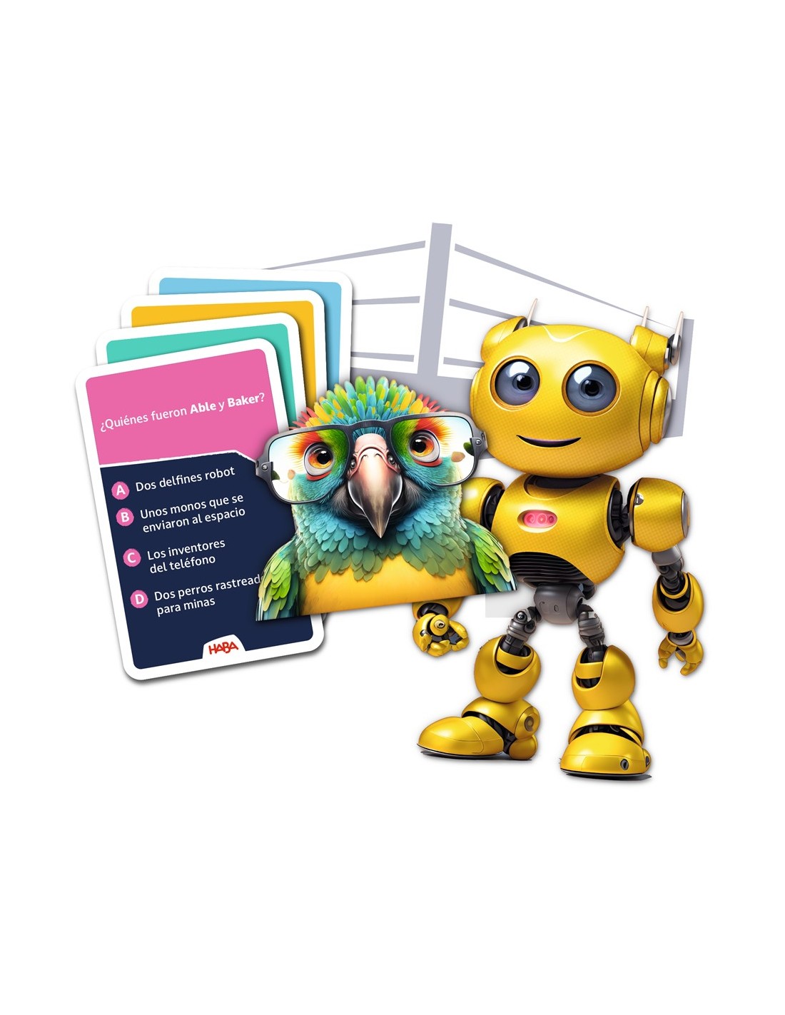 Contiene 222 cartas con preguntas y respuestas de 4 categorías, 8 cartas de respuestas (4 de naturaleza y 4 de tecnología), 1 cuadrilátero (base de la caja del juego con una cuadrícula compuesta por 3 piezas y 1 tablero) y 2 mascotas, 4 fichas redondas de colores, 2 pinzas de la ropa y las instrucciones del juego.