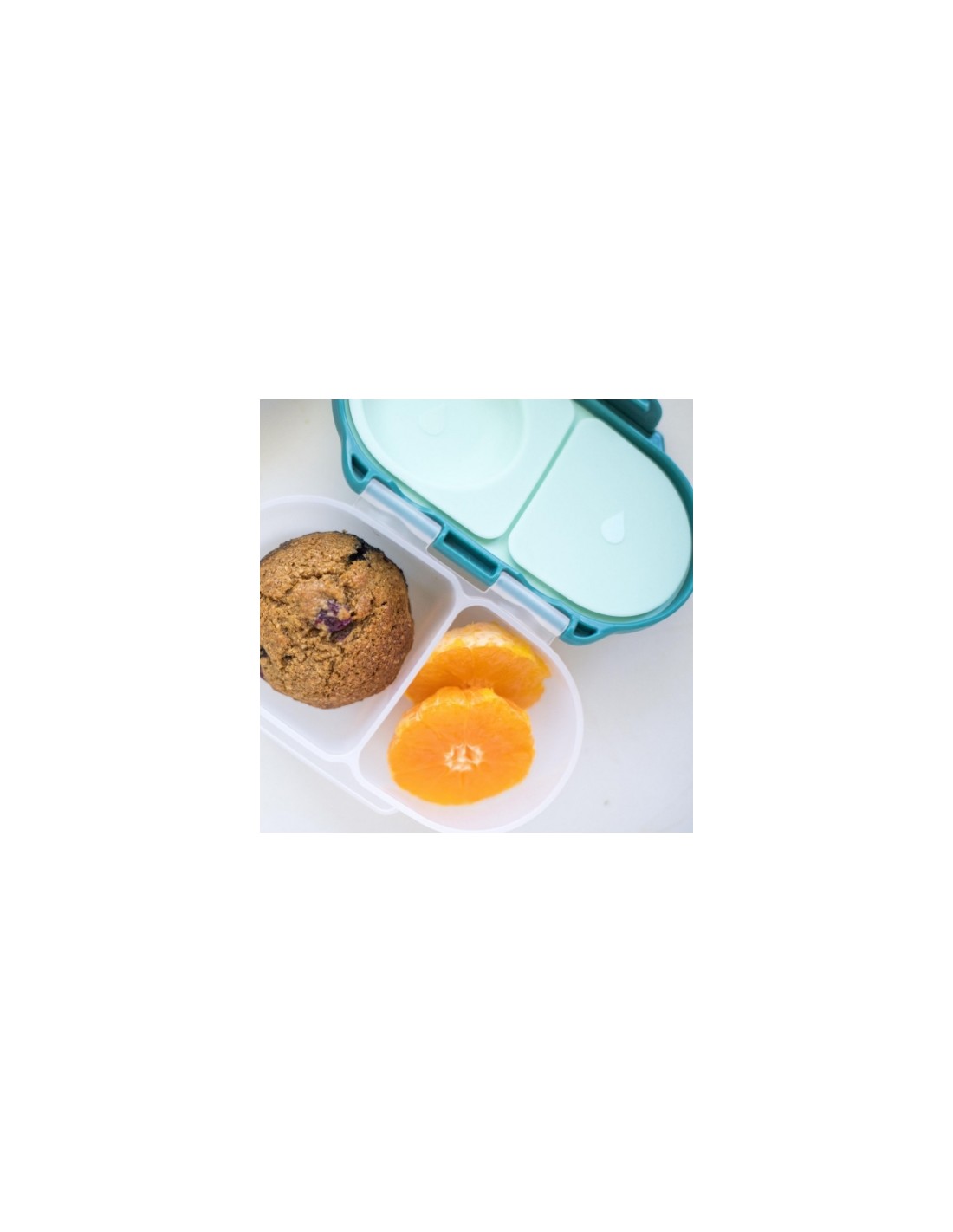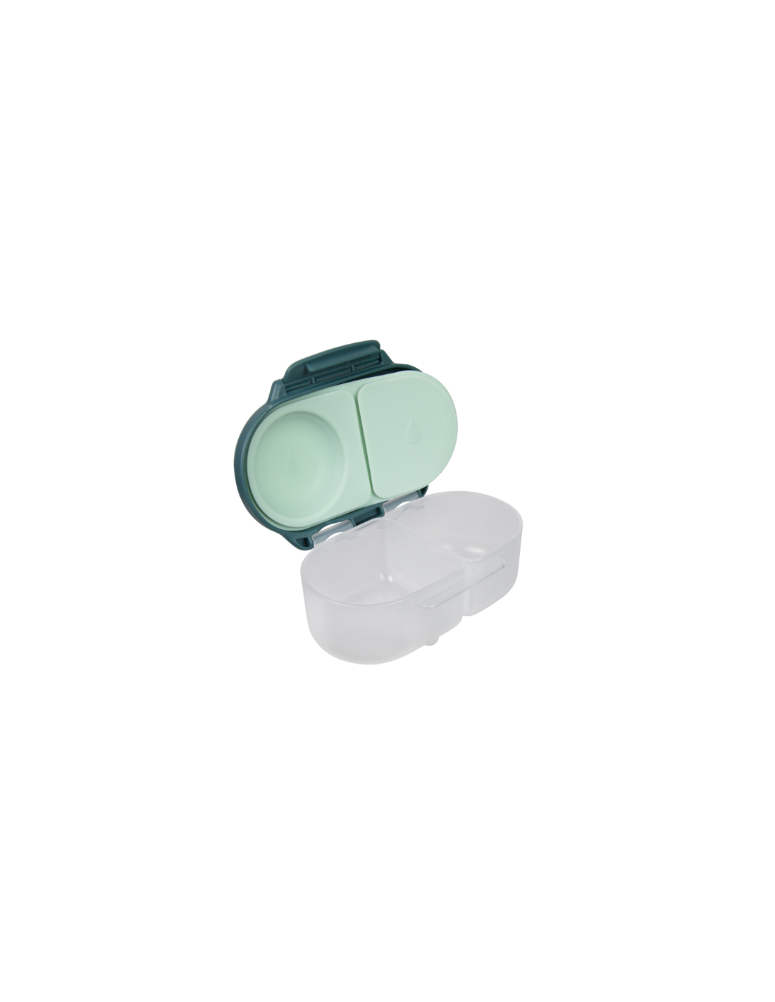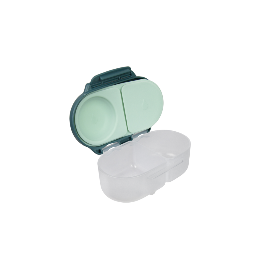 Con las mini cajitas snack de B.Box, la hora de la merienda es mucho más fácil. La opción perfecta para raciones más pequeñas, para el colegio, el parque, una excursión, una tarde de compras, etc. El compartimento flexible para fruta permite transportar la fruta enteras, sin necesidad de cortarla. Los dos compartimentos cuentan con la protección a prueba de fugas de la almohadilla de silicona, por lo que se pueden transportar snacks húmedos, como puré, yogures, raciones de comida con salsa, con total tranquilidad. El clip de fácil apertura y cierre es lo suficientemente grande para las manos y los dedos de los más peques y la almohadilla flexible es extraíbles para una limpieza fácil e higiénica.