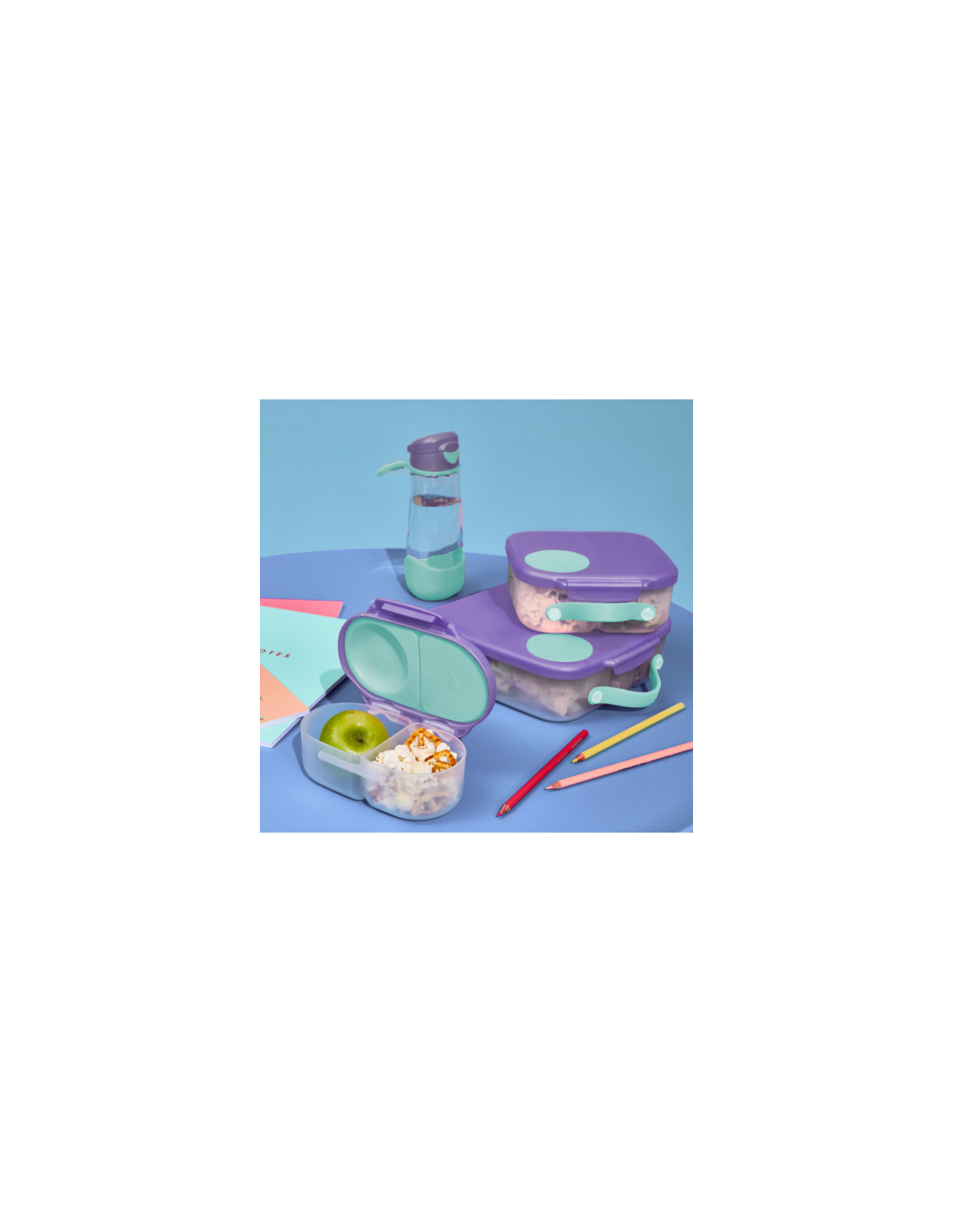 Todas las características que te encantan de la caja de almuerzo original, pero un poco más liviana para los apetitos más pequeños. La mini caja de almuerzo es compacta, pero tiene mucho espacio para opciones de almuerzos saludables con variedad de alimentos. Tiene un compartimento con almohadilla elástica para frutas enteras que se adapta a la forma de la fruta para que puedas poner frutas enteras dentro de la caja de almuerzo. Tiene 2 compartimentos a prueba de fugas con una almohadilla de silicona flexible, apto para alimentos húmedos y secos, como puré, yogures, salsas, etc. El divisor extraíble se desliza fácilmente, lo que te permite ajustar el tamaño del compartimento. El asa de transporte integrada, suave y de fácil agarre, se puede usar para guardar y sacar la comida de la mochila y el clip grande es adecuado para los dedos pequeños y fomenta la independencia de los niños permitiendo una fácil apertura. La almohadilla es extraíble para su limpieza. Capacidad de 1 litro. Para preservar la funcionalidad a prueba de fugas, no se recomienda lavar en el lavavajillas.