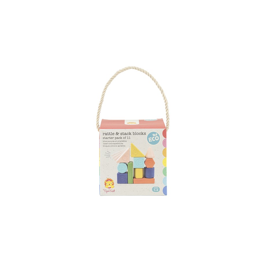 ¡Bloques ecológicos con una diferencia sensorial! Agita estos bloques para escuchar divertidos sonidos de traqueteo y apílalos para hacer cualquier cosa que sueñe tu imaginación. Incluye 11 bloques.