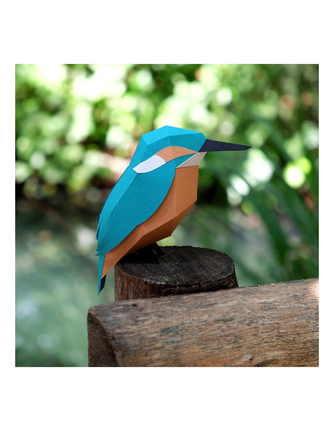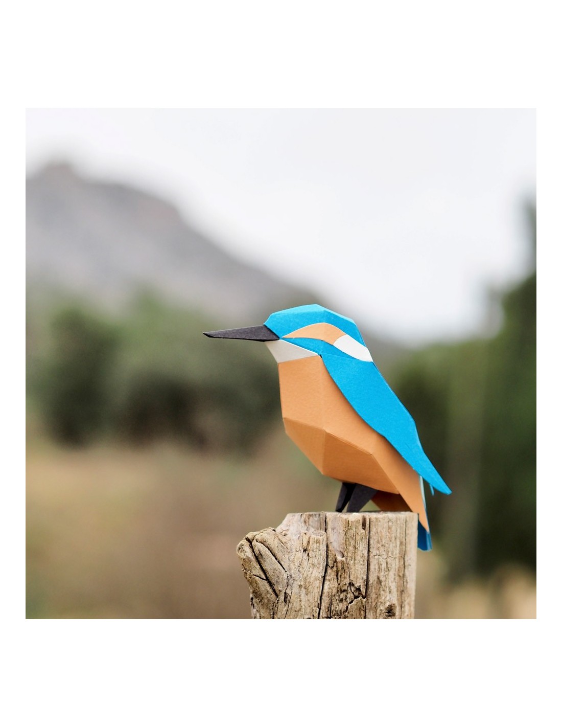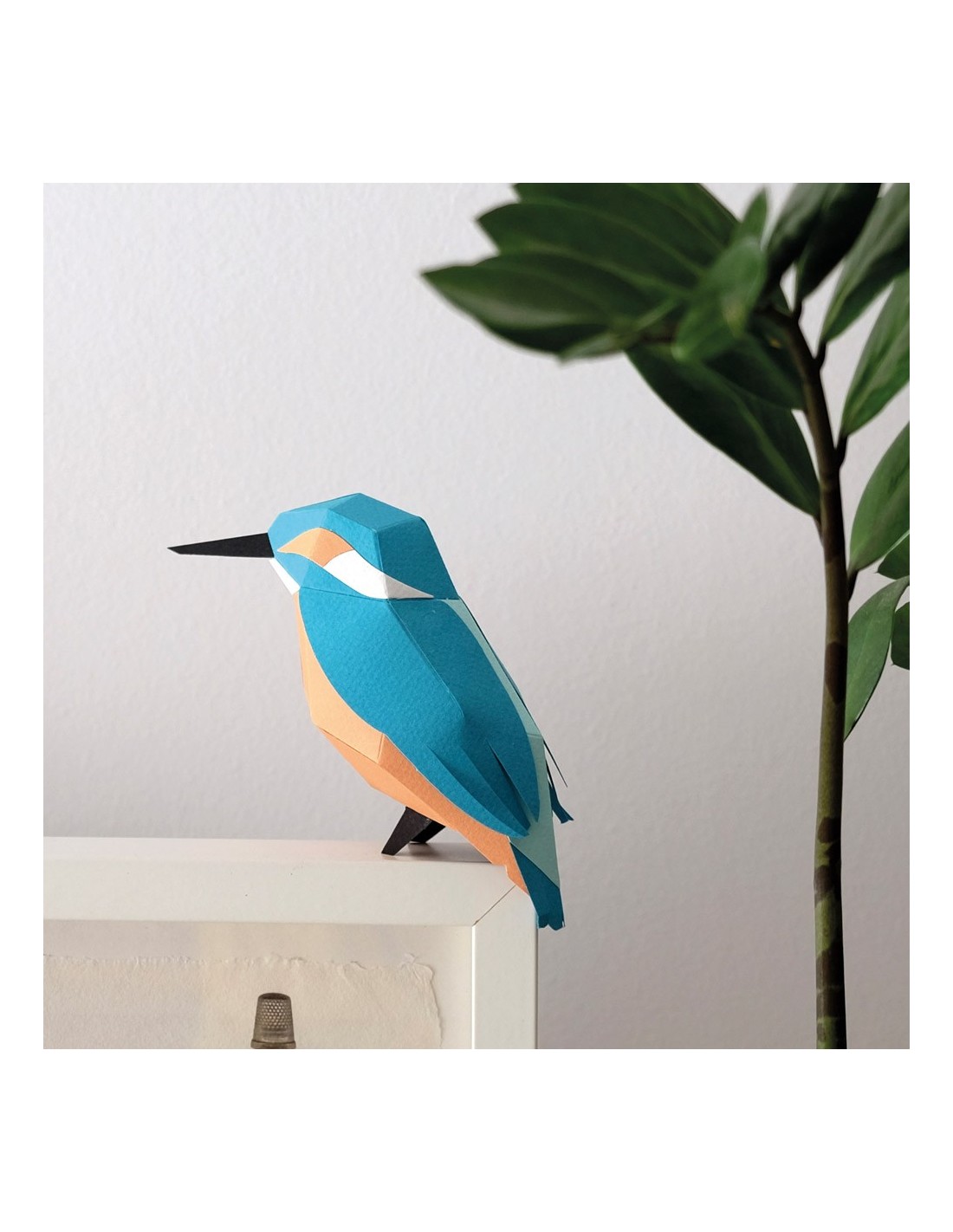El martín pescador se caracteriza por sus colores azul turquesa y salmón, que lo hacen destacar como un pájaro especialmente llamativo. Es una figura pensada para colocarla, por ejemplo, en una esquina de un estante, de modo que la cola quede colgando hacia fuera.