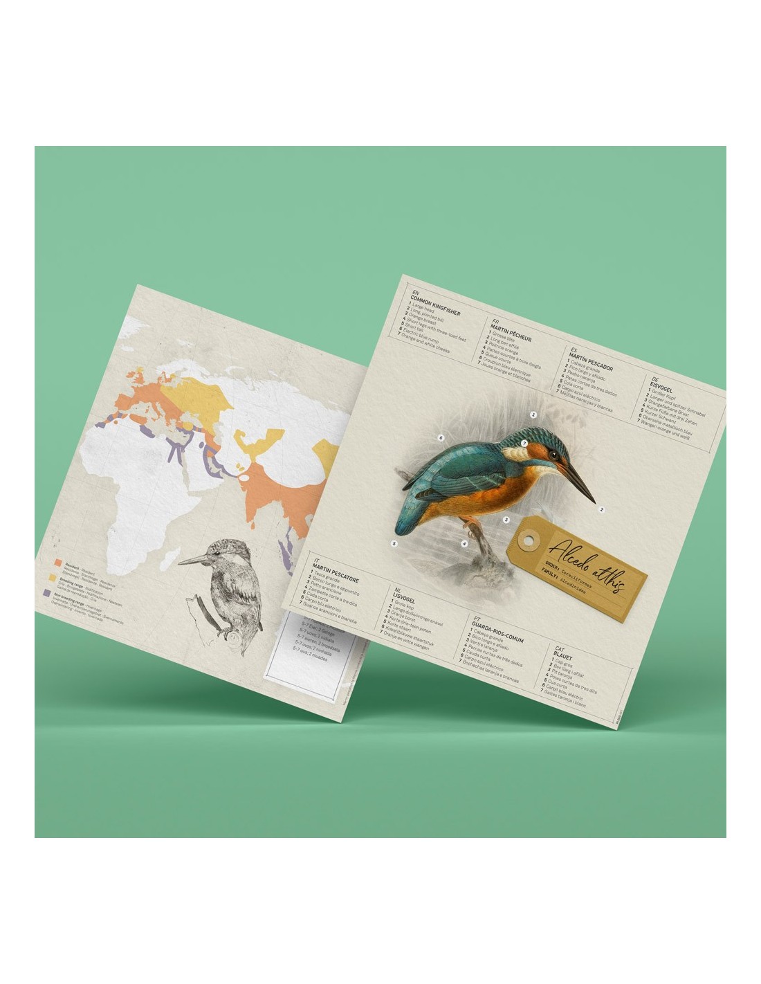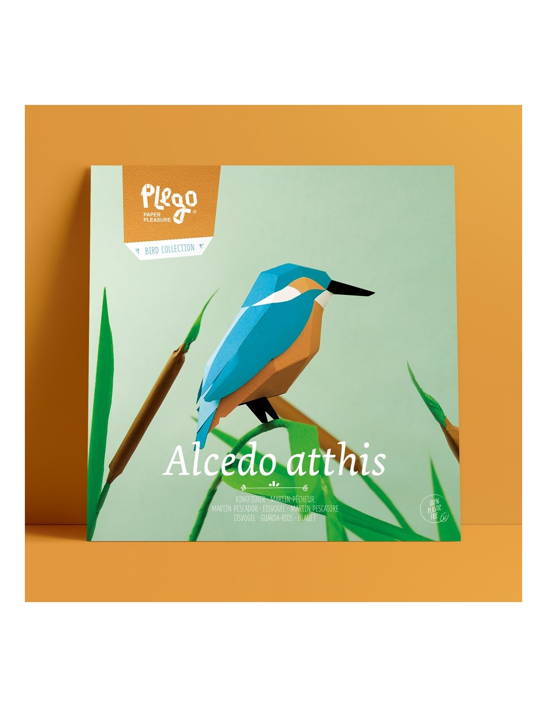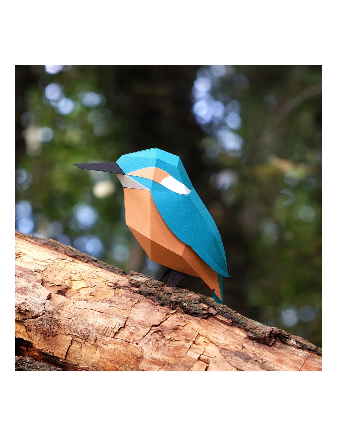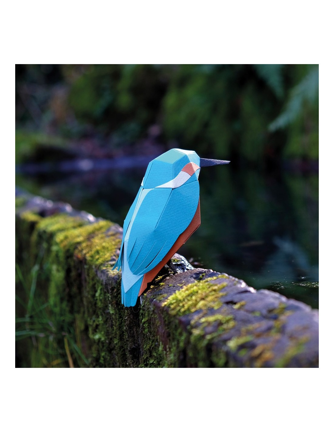 El martín pescador se caracteriza por sus colores azul turquesa y salmón, que lo hacen destacar como un pájaro especialmente llamativo. Es una figura pensada para colocarla, por ejemplo, en una esquina de un estante, de modo que la cola quede colgando hacia fuera.