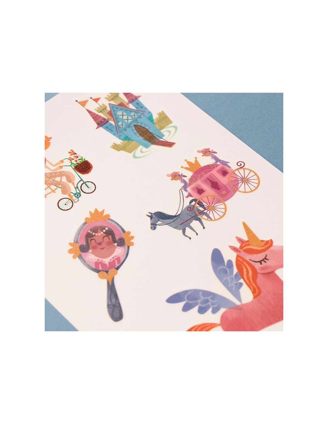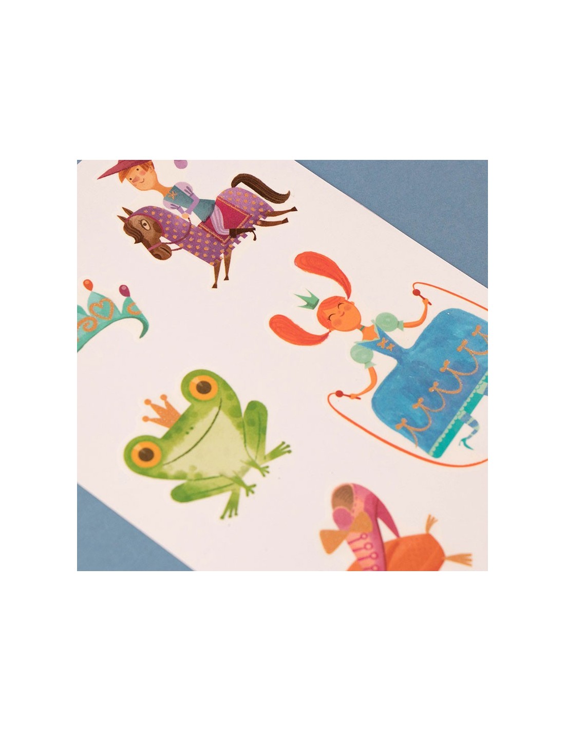 10 calcomanías de calidad de príncipes y princesas que podrás lucir sobre tu piel. Son seguras, no tóxicas, muy divertidas y fabricadas en Europa