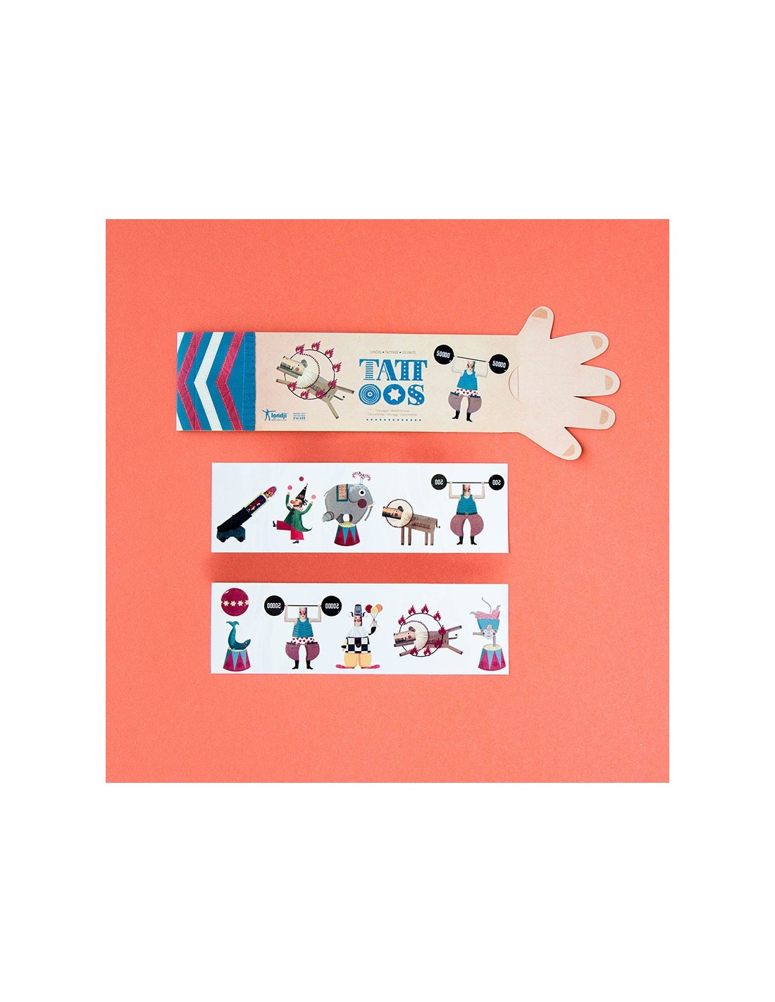 10 tatuajes temporales infantiles del mundo del circo. Testadas dermatológicamente. Son seguras, no tóxicas, divertidas y fabricadas en Europa