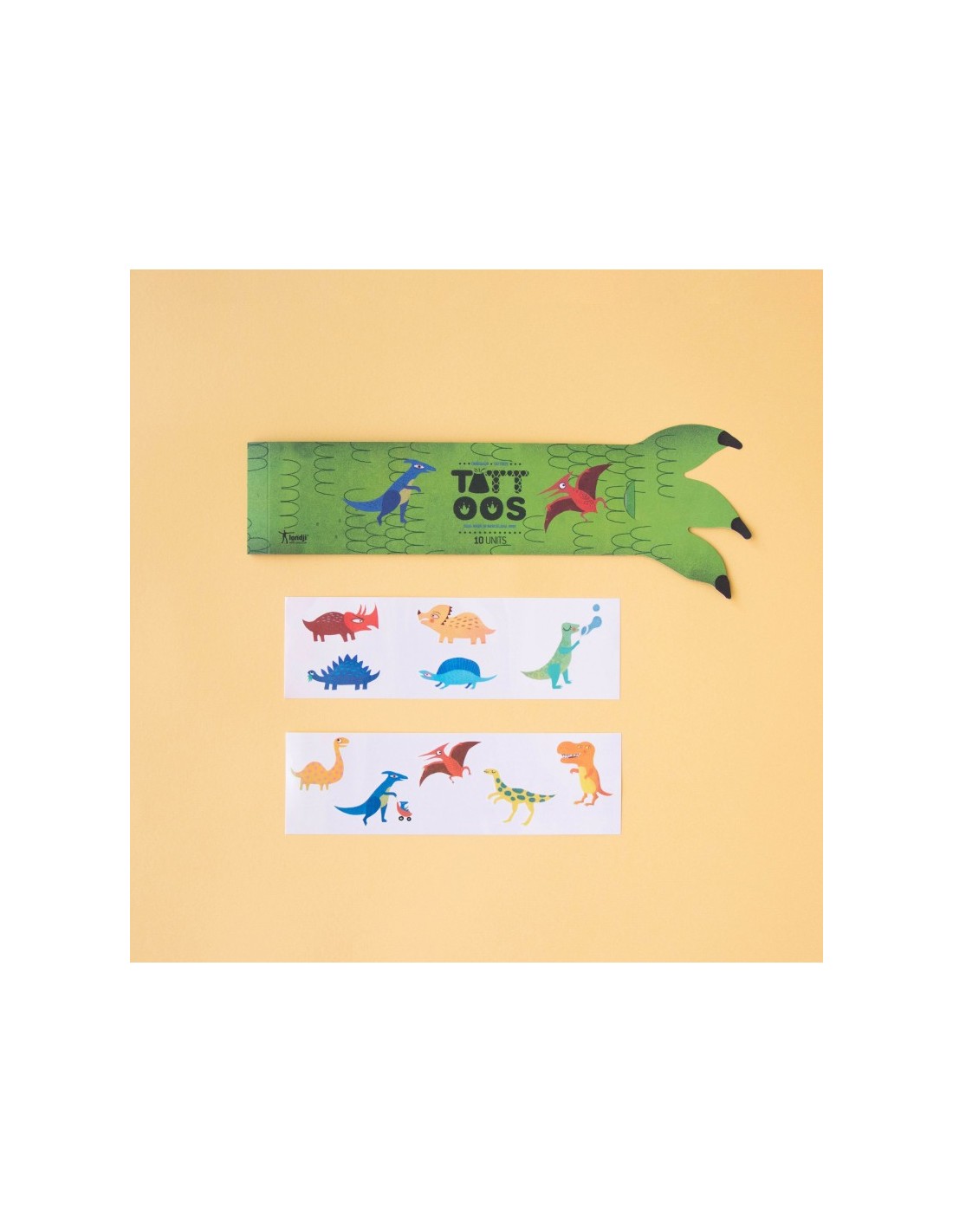 10 calcomanías infantiles de calidad de dinosaurios para decorar el cuerpo de los más pequeños de la casa. Fabricadas en Barcelona, de proximidad