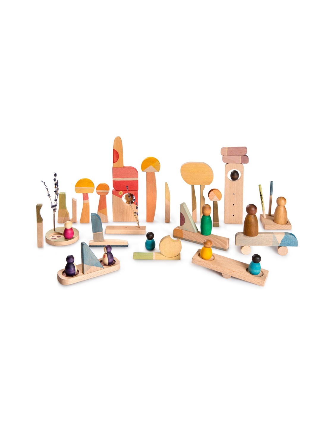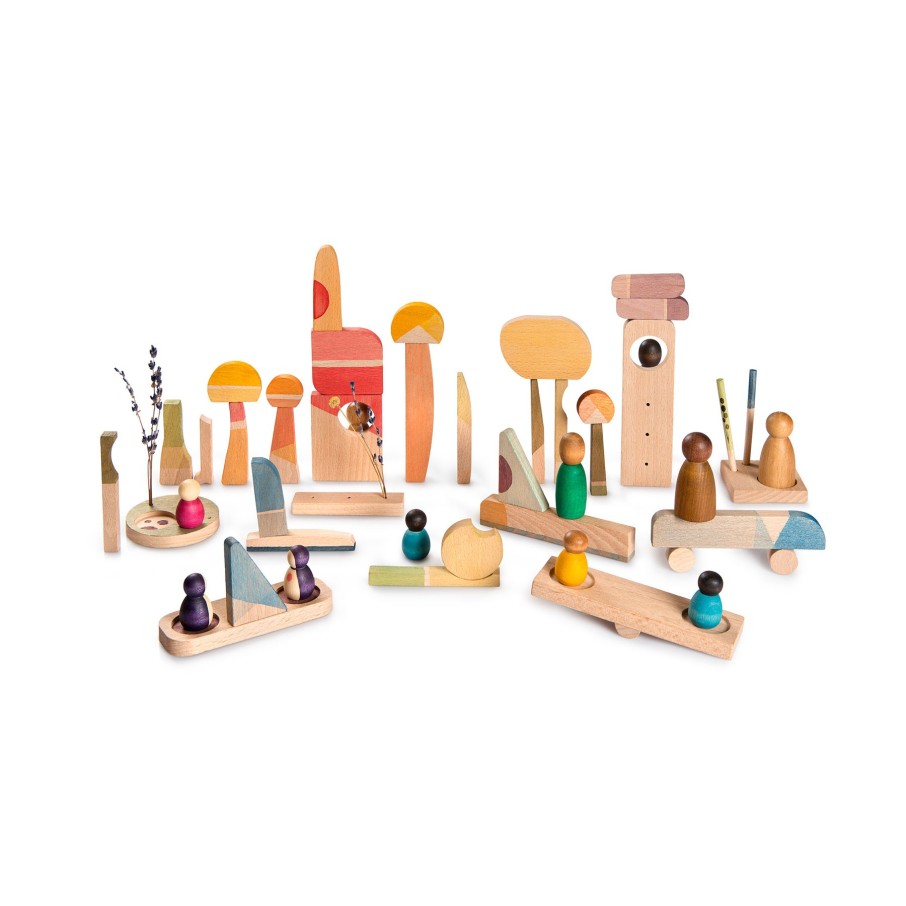 Un set compuesto por 40 piezas para construir tu lugar feliz. El set permite a los niños explorar por sí mismos a través de todas sus fases de aprendizaje. Es un gran complemento para la narración de historias y la creación de Mini Mundos, hasta apilar, encajar, combinar colores, un mundo infinito de posibilidades.
