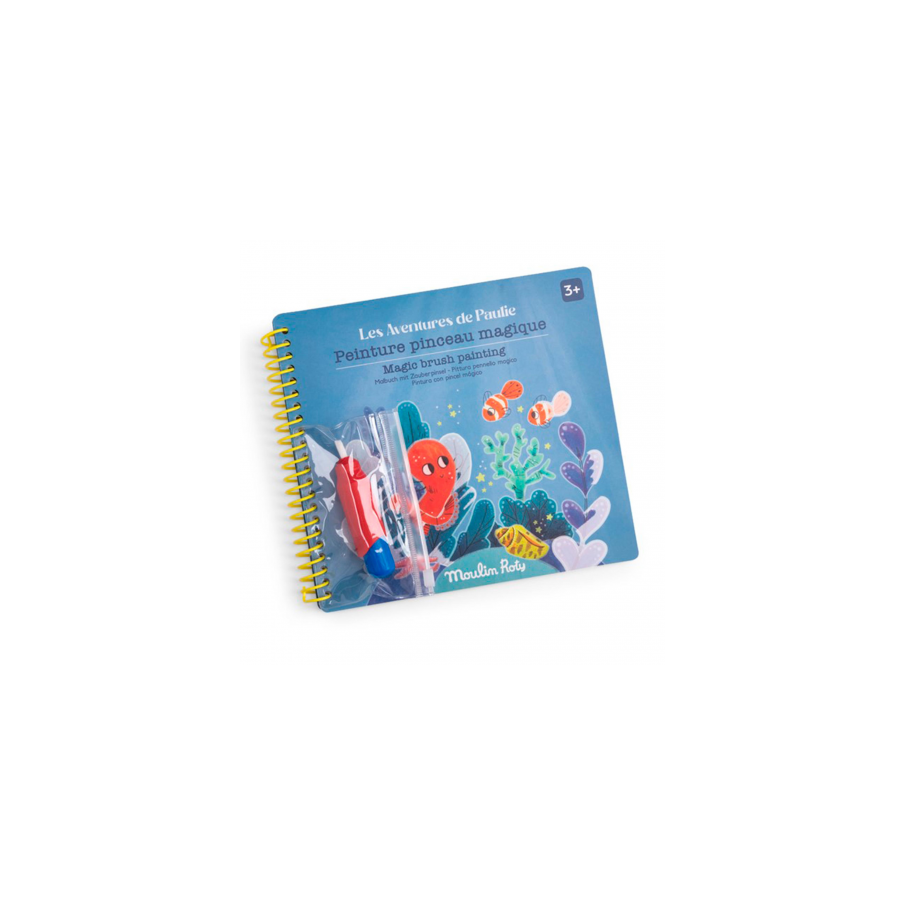 ¿Nunca has pensado que los pintores hacen magia? Pues esa misma magia es la que puedes experimentar cuando, al pasar el pincel por encima de las manchas blancas, ves aparecer los dibujos a color. El cuaderno contiene 10 láminas para colorear y un pincel que se rellena con agua, así no hace falta ir mojándolo en un bote constantemente. Cuando el dibujo se seca, desaparece y puedes volver a empezar.