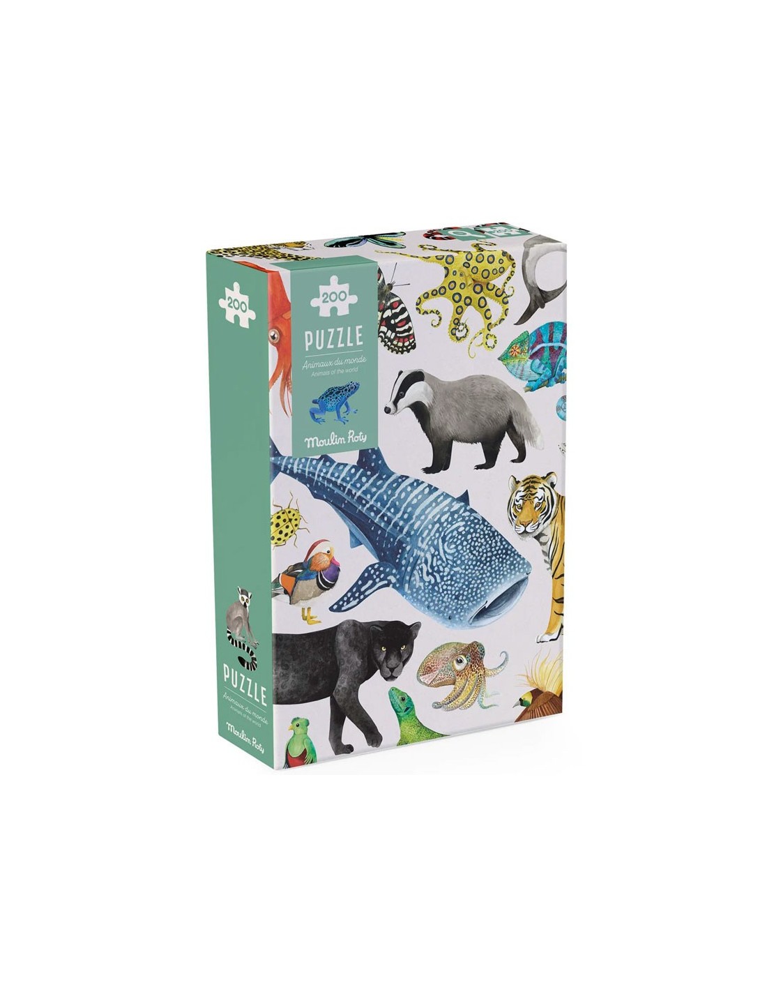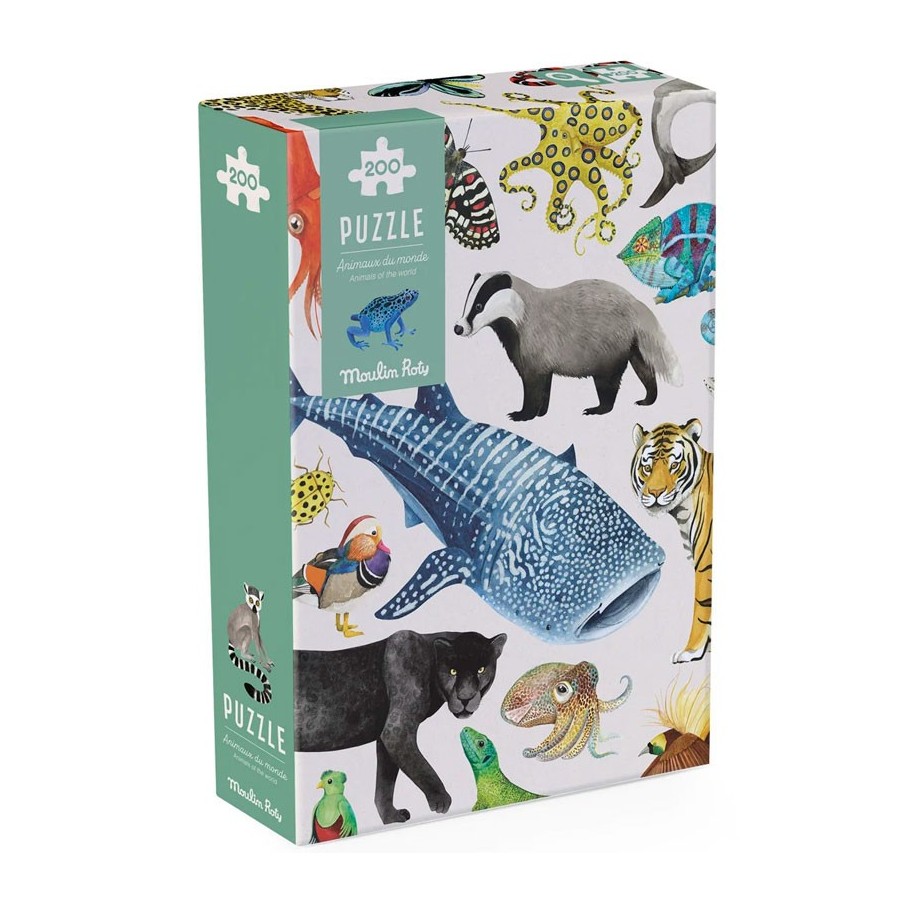Puzzle de 200 piezas con preciosas ilustraciones que contiene detalles de los diferentes animales del mundo.