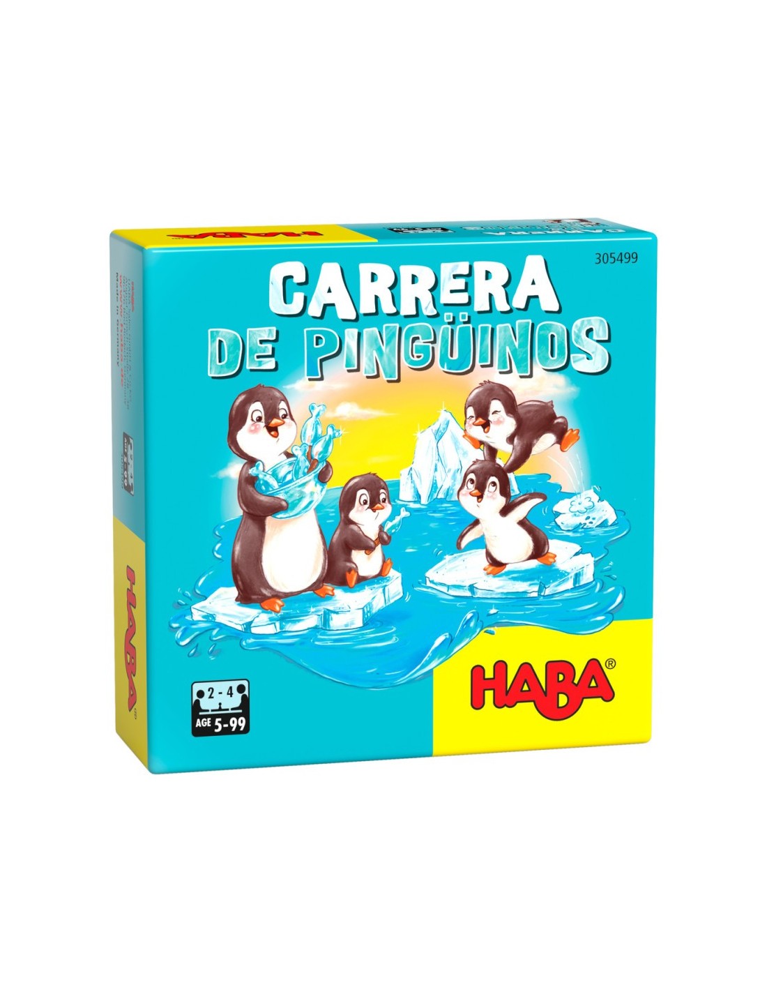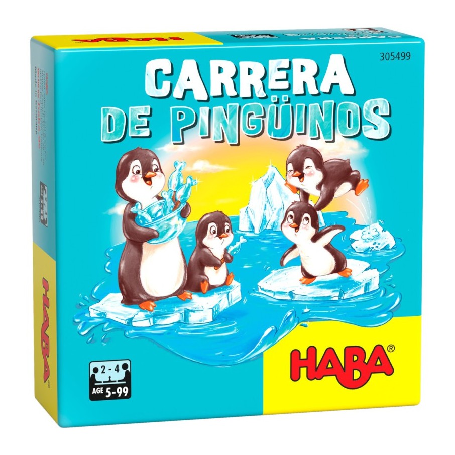 Carrera de pingüinos es un juego de mesa de Haba con el que lxs más peques podrán jugar una carrera polar. Cuando la mamá pingüino comienza a repartir pescaditos, los pequeños pingüinitos corren de un témpano a otro para ganarse su premio.