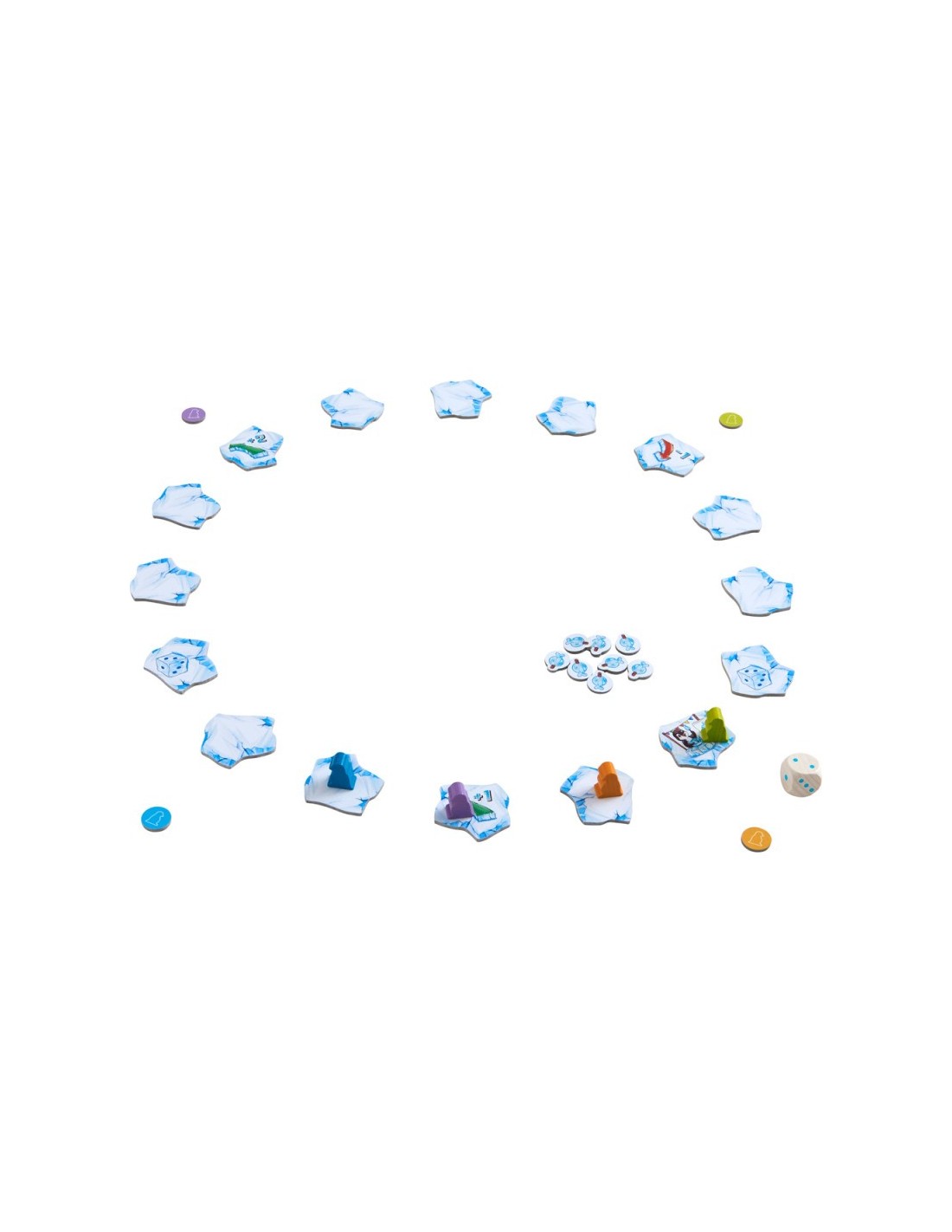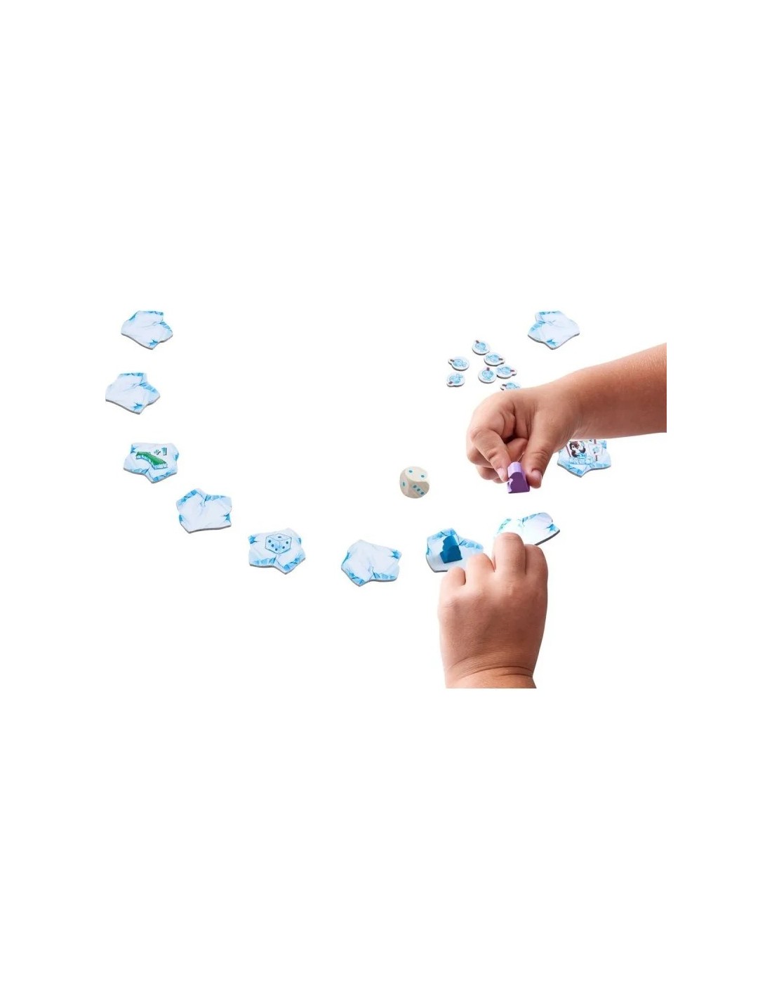 Pero no todo va a ser tan fácil, cada vez que nuestros simpáticos pingüinitos saltan de un témpano de hielo, éste se dará la vuelta revelando una nueva sorpresa. Estos símbolos de acción revelados guiarán nuestra carrera. Así, compitiendo contra el reloj y las posibles acciones, el/la primer/a jugador/a que complete tres vueltas ganará la partida.