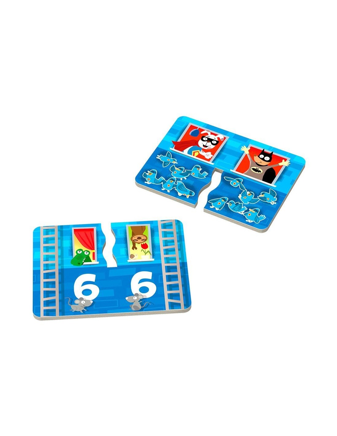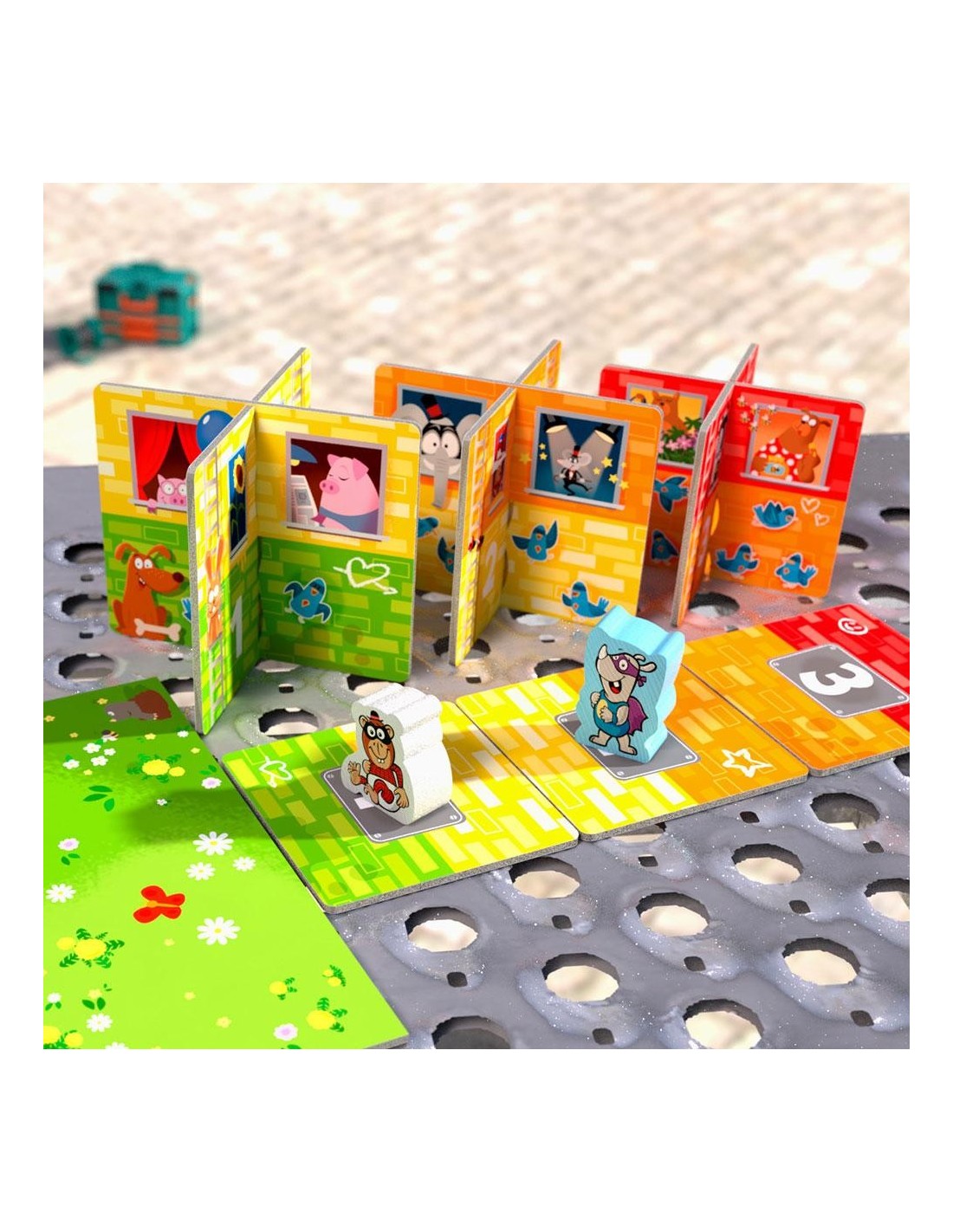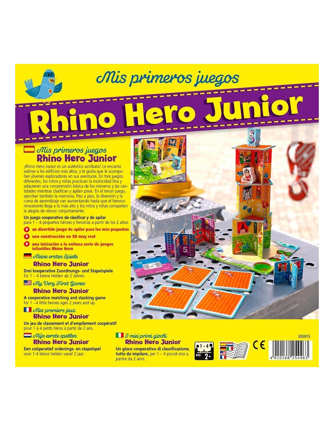 El pequeño gran Rhino Hero es un acróbata profesional, le encanta ir subiendo de edificio en edifico a la espera de avistar a ladrones o malhechores, pero para eso, necesita tu ayuda. En esta caja de aventuras puedes descubrir tres modos de juego diferentes, desde practicar la motridad fina construyendo grandes edificios, hasta clasificar sus paredes a través de sus números y colores. Pero ¿Recordarás la combinación correcta de paredes y tejados? Un juego evolutivo que ira acompañando el crecimiento de lxs más pequeños y pequeñas de la casa.