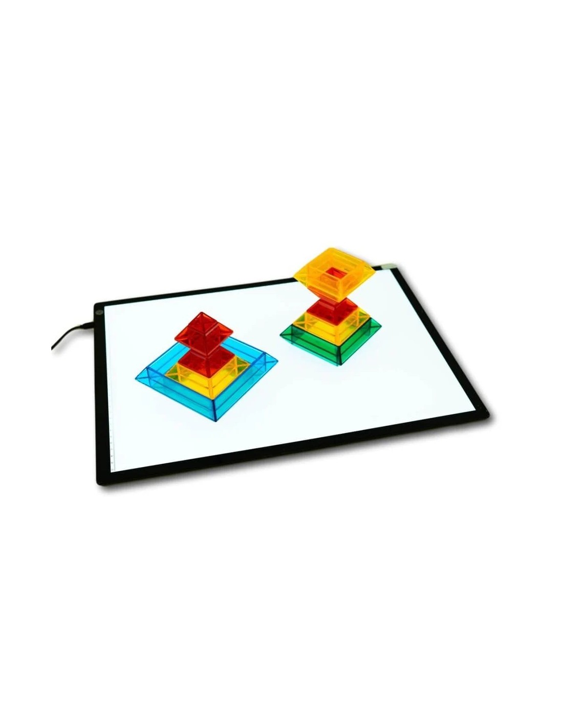 Las mesas de luz de este tamaño (A2) son perfectas para explorar la luz y las sombras, los distintos tonos de color, opacidades y transparencias, y para redescubrir detalles ocultos en los objetos cotidianos.