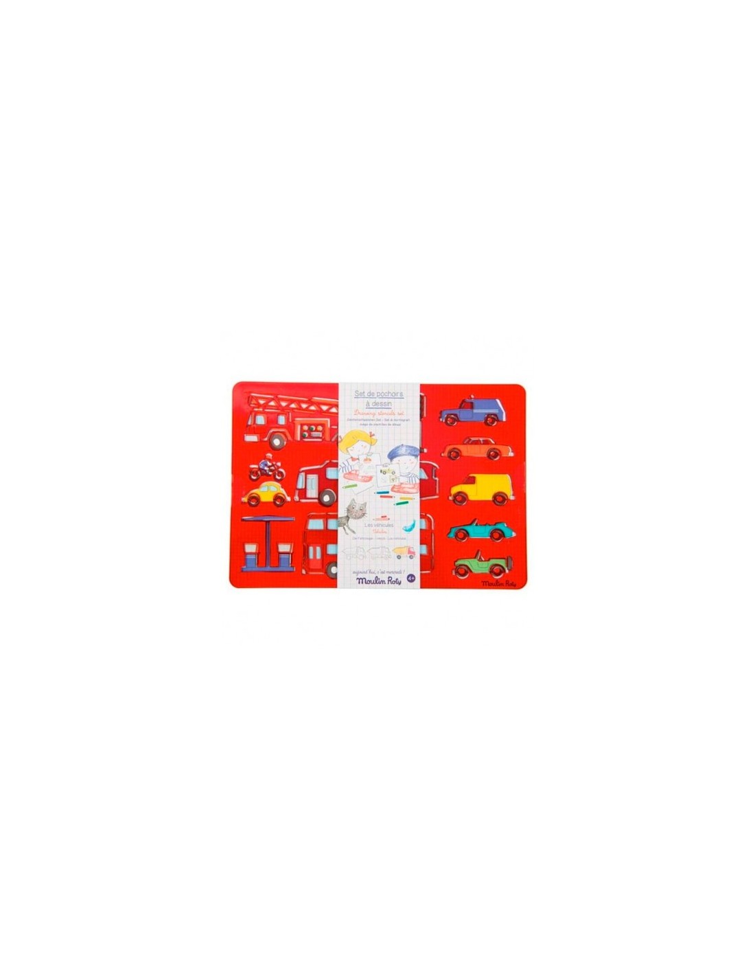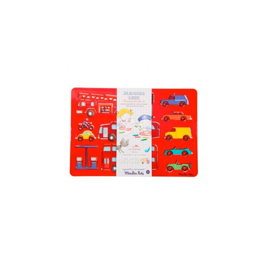 Set de dos plantillas de plástico lavable para crear dibujos de diferentes vehículos!