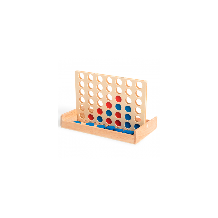 Para 2 jugadores. Gana el primer jugador que consigue hacer una fila recta (vertical, horizontal o diagonal) con 4 fichas de su color.