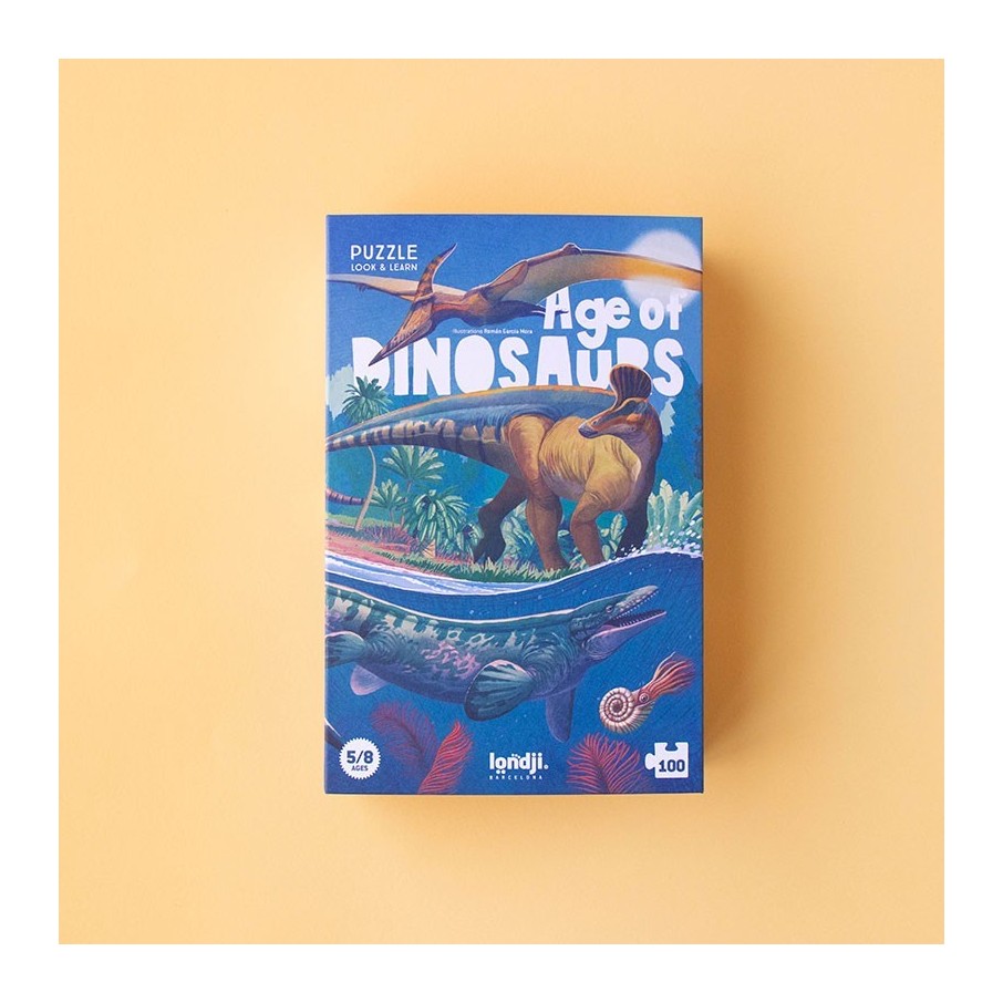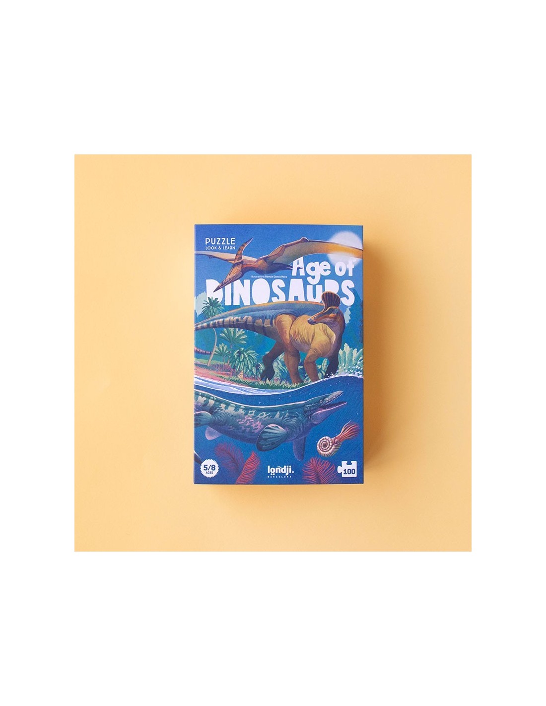 Un puzzle de 100 piezas de dinosaurios y un juego de observación. ¡Un juguete didáctico con el que aprenderemos curiosidades de diferentes dinosaurios mientras nos divertimos!