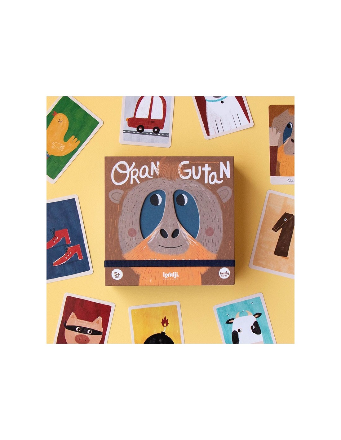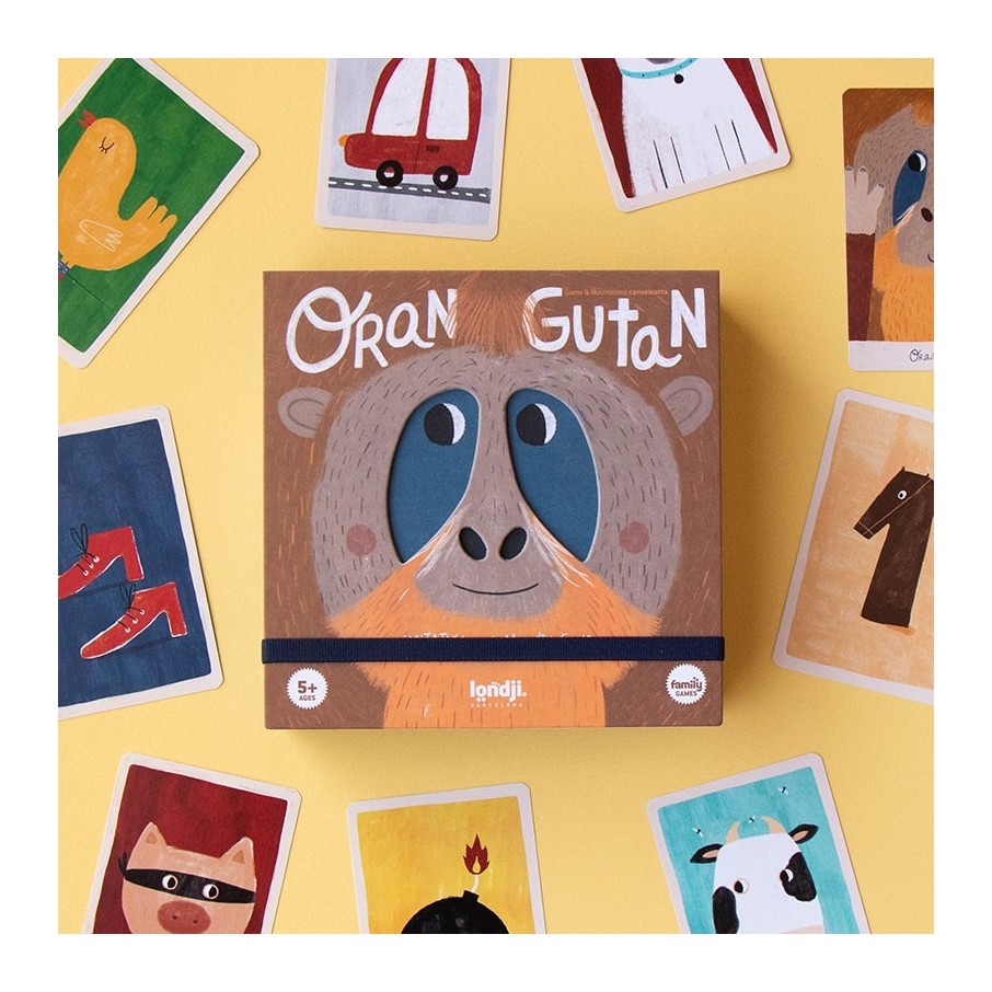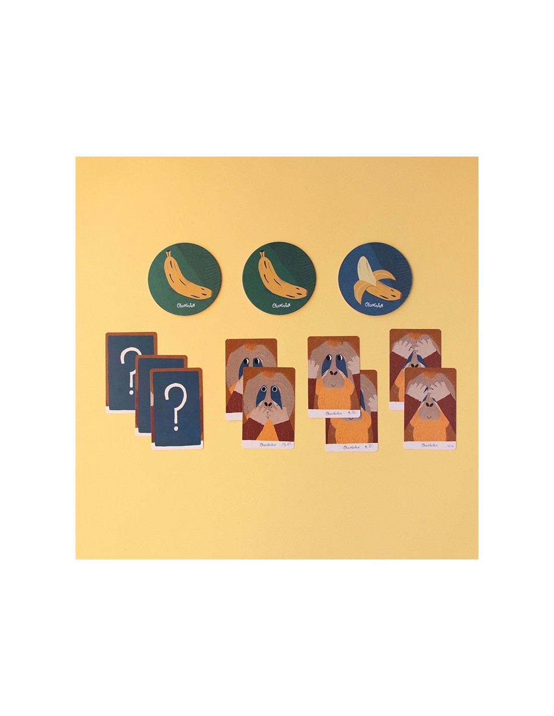 Un juego en el que tendremos que recordar la secuencia de sonidos y gestos que vamos creando entre todos los jugadores a partir de las imágenes de las cartas. ¡Deberás conseguir 3 cartas de orangután antes de quedarte sin bananas!