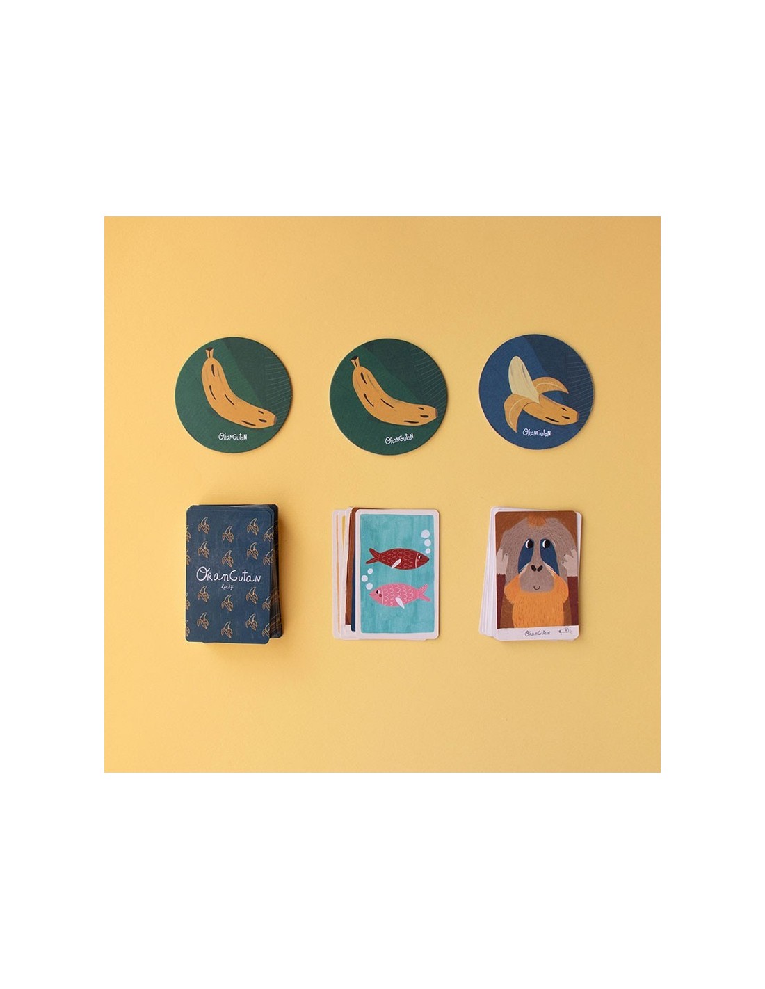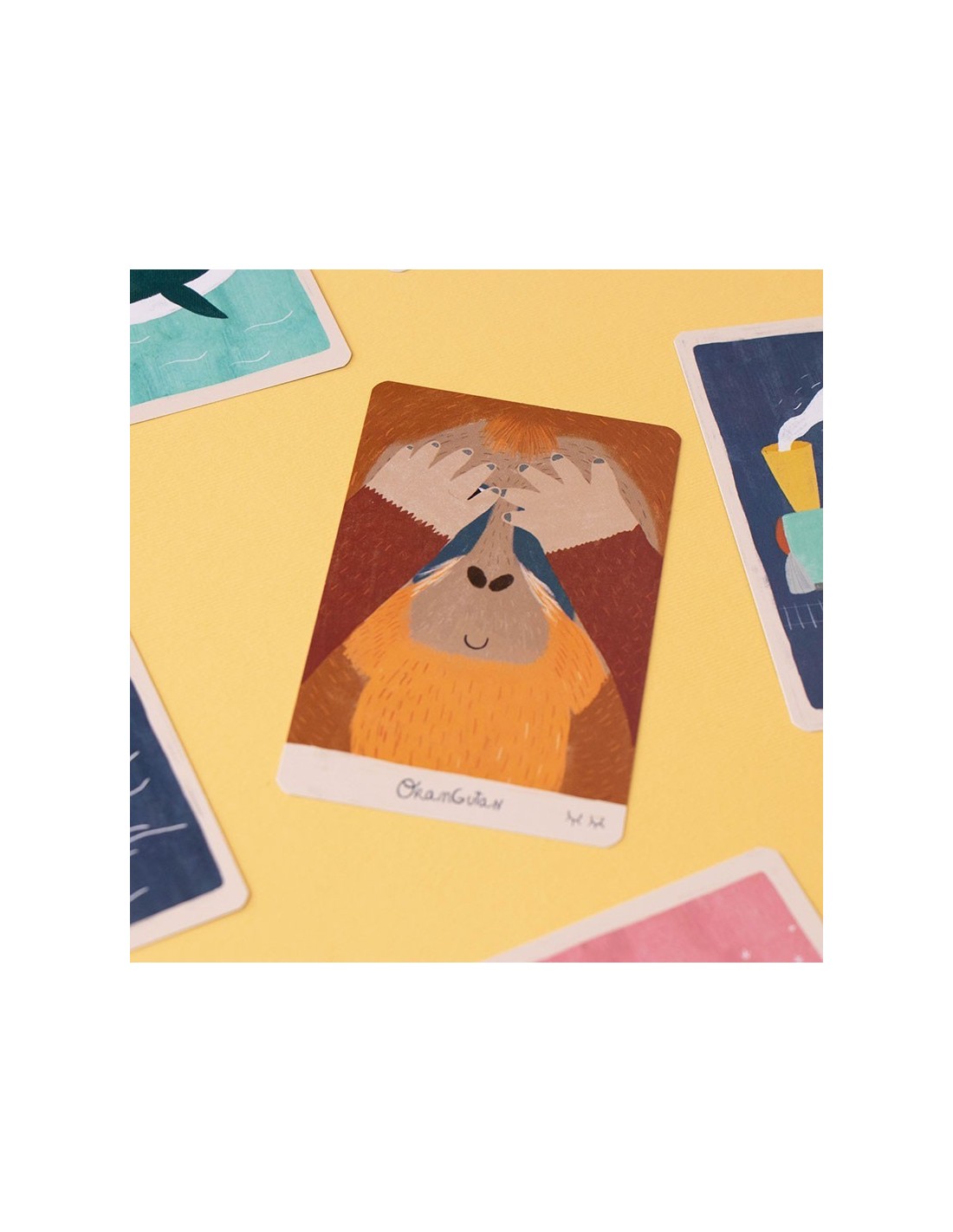 Un juego de cartas de memoria de sonidos y gestos muy divertido para toda su familia. ¡Consigue los 3 orangutanes antes de que se acaben las bananas!