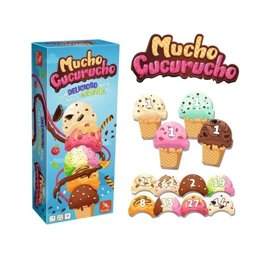 Mucho Cucurucho es un juego de mesa de 2 a 4 jugadores, con partidas de 10 minutos de duración. Recomendado para mayores de seis años, se conforma como un juego de memoria, de azar y de estrategia.