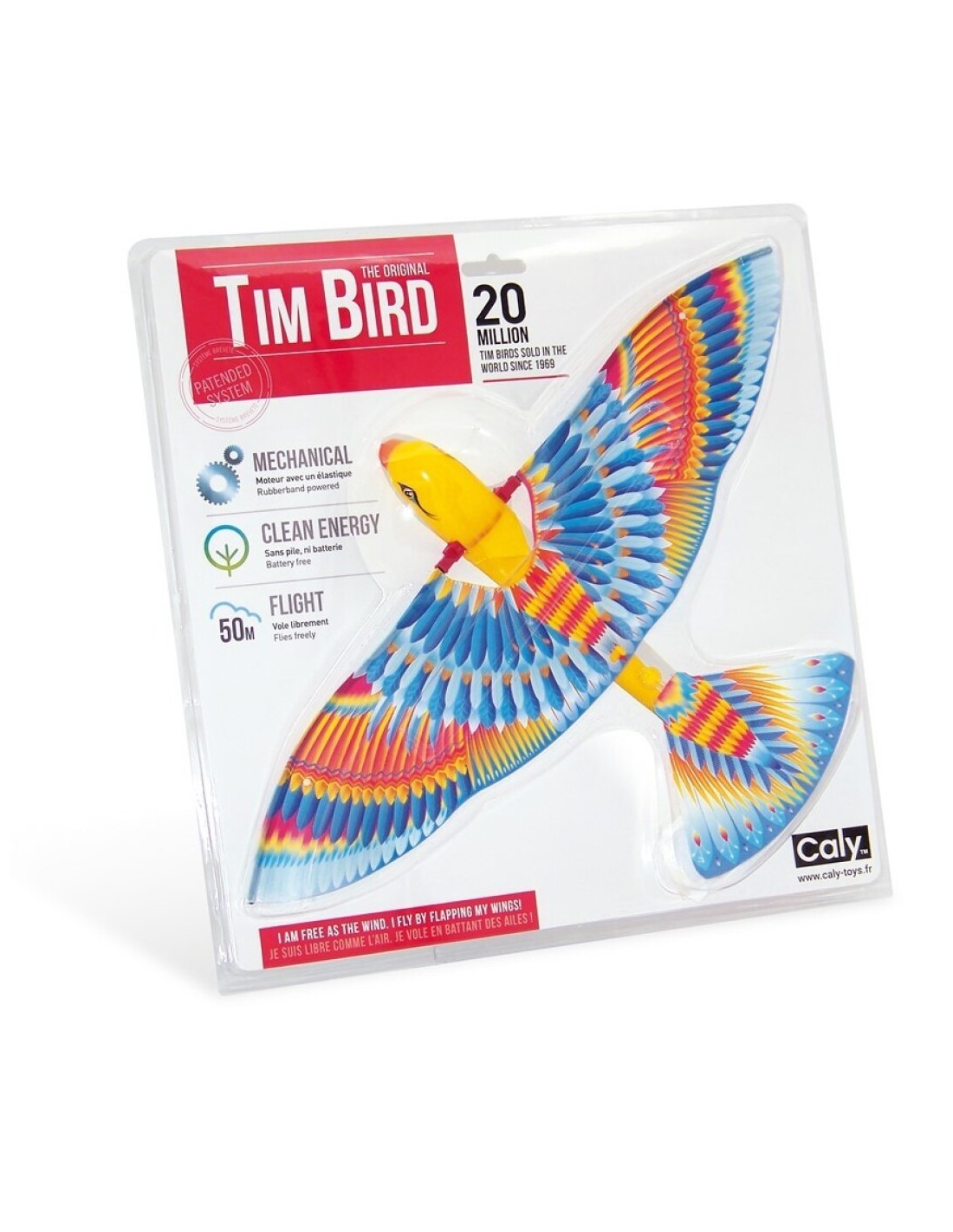 Desde 1969, Tim es un pájaro totalmente mecánico (sin pilas) que reproduce fielmente el vuelo de las aves y vuela hasta 50 metros batiendo sus alas. Incorpora un sistema de bloqueo de las alas que permite un planeo suave y uniforme al final del vuelo.