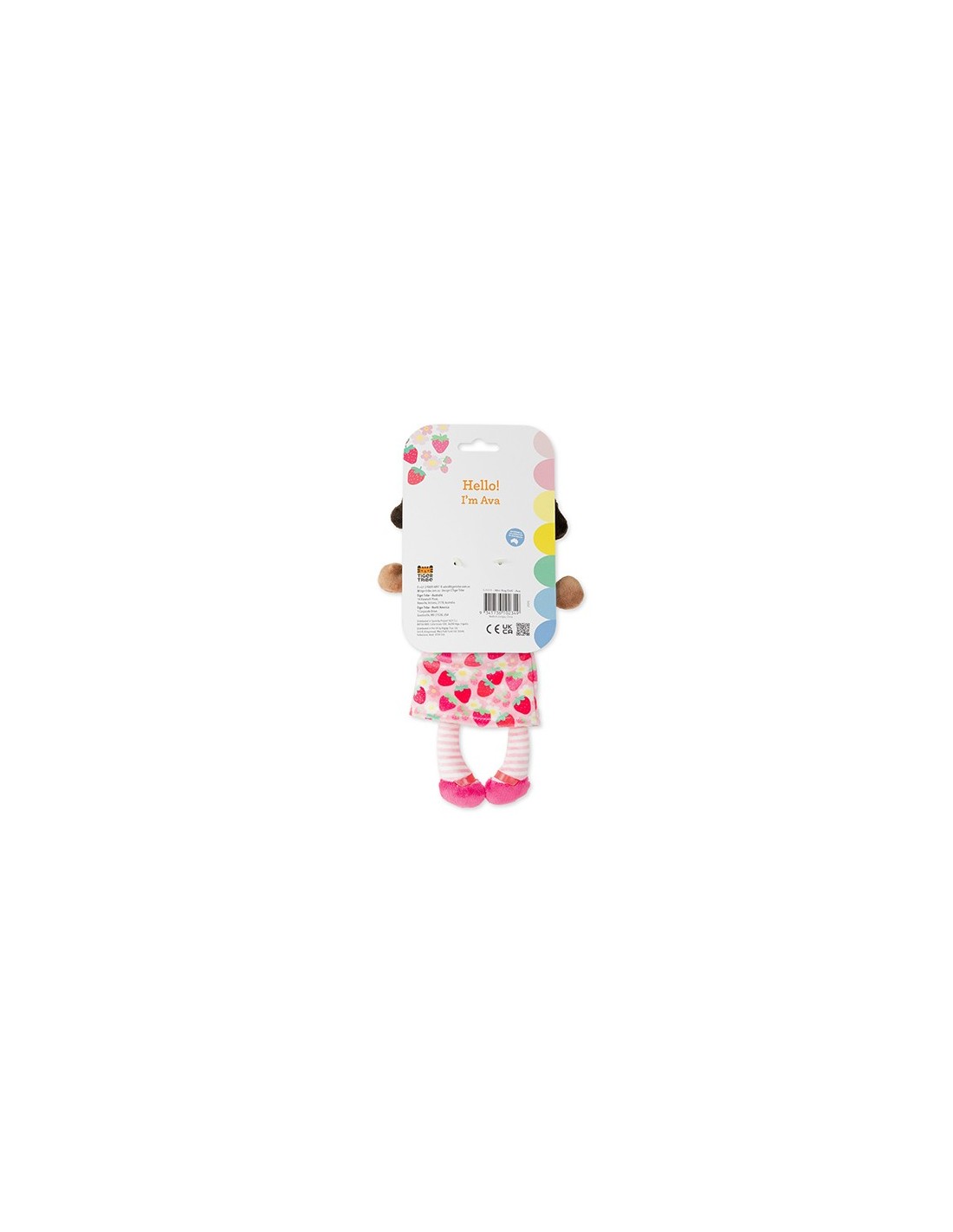 Con un encantador estilo vintage y fabricada con suave y acogedora tela Velboa, esta adorable muñeca está destinada a ser la mejor amiga de tu peque para siempre. Con su dulce vestido de estampado de fresas, lucirá preciosa y dará muchas horas de juego.