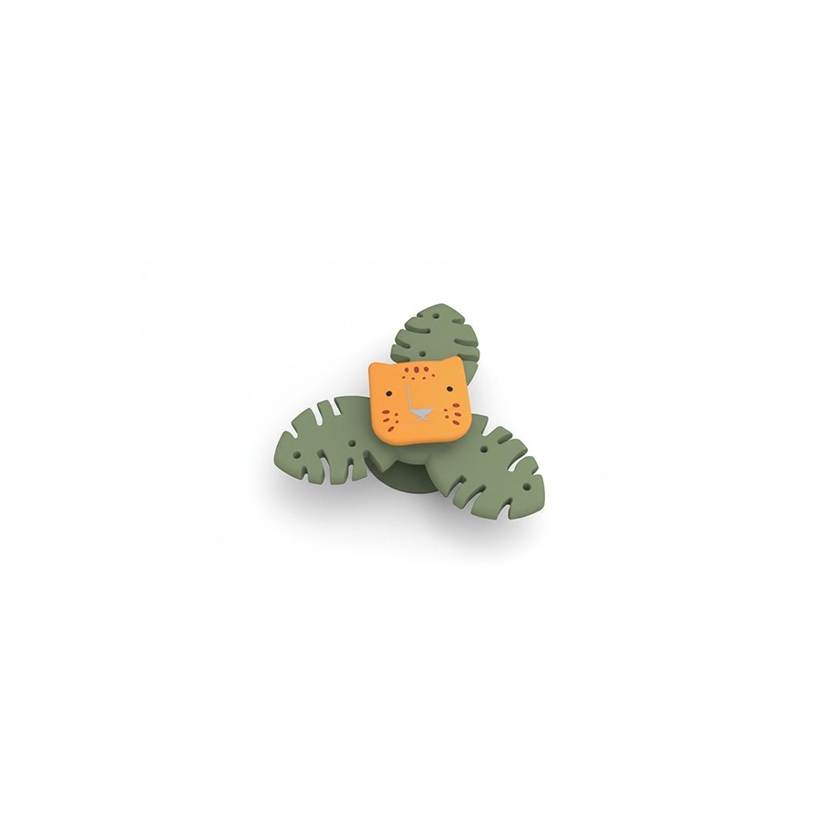 ¡Un pequeño tigre para hacerlo girar! Este spinner de silicona con diseño de jungla despierta la curiosidad de lxs niñxs. Fácil de manipular, estimula la motricidad fina y los sentidos gracias a sus formas suaves y su ventosa que permite fijarlo en cualquier lugar. Para llevarlo a todas partes y disfrutar de momentos de juego relajantes.