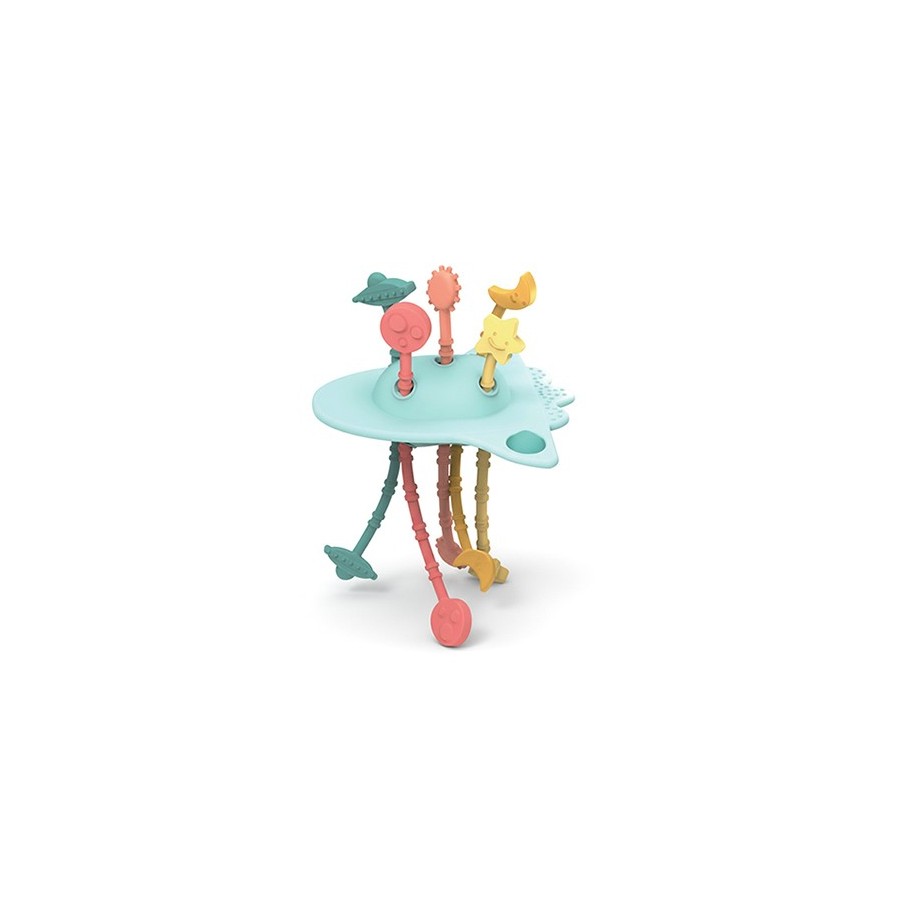 ¿Listo para el despegue? Este adorable cohete sensorial de silicona invita a lxs niñxs desde los 10 meses a explorar el universo con la punta de los dedos. Con cordones para tirar adornados con una estrella, una luna, un transbordador espacial y un planeta, estimula la motricidad fina y el despertar sensorial. Fácil de llevar a todas partes, ¡es un juguete cautivador que fascina a los pequeños astronautas en ciernes!