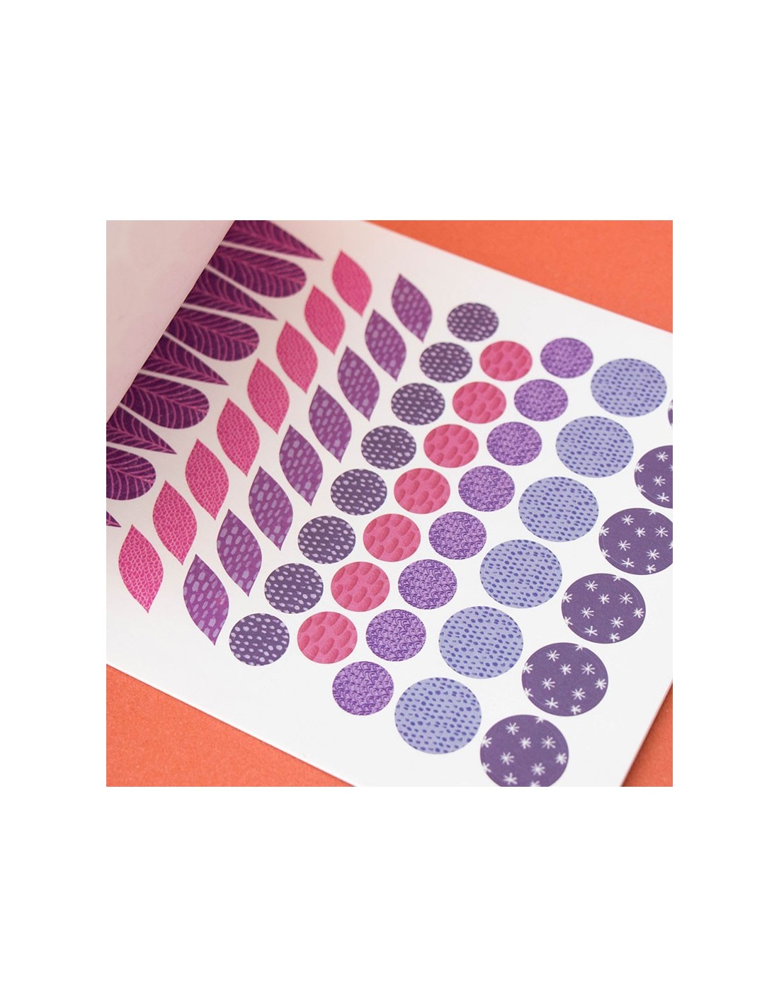 Una libreta de pegatinas con 50 preciosas ilustraciones a punto para acabarlas con tu arte. Hecha en Barcelona en papel de bosques sostenibles.