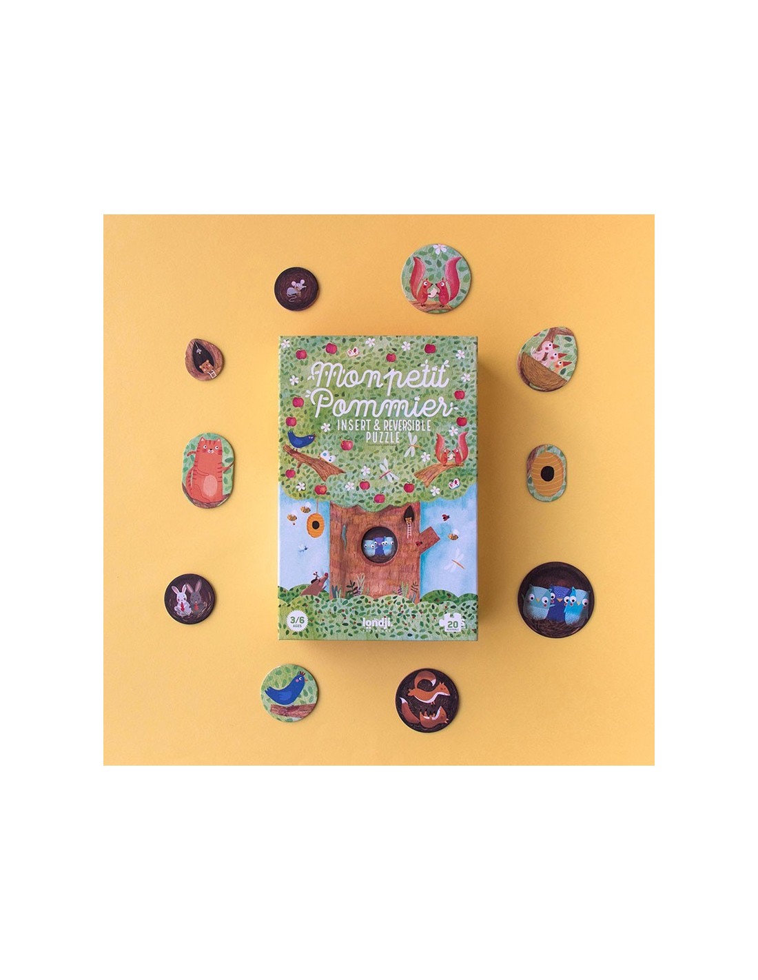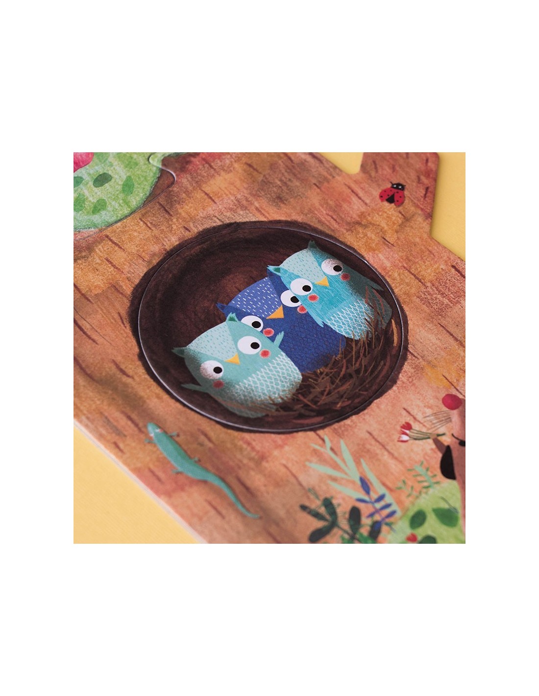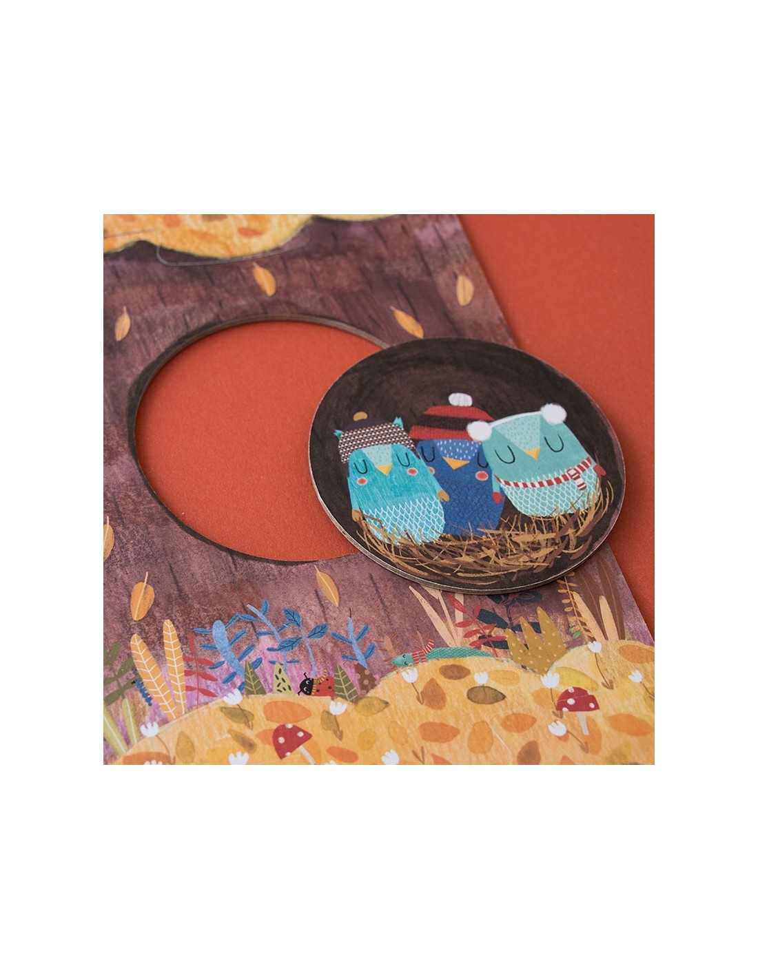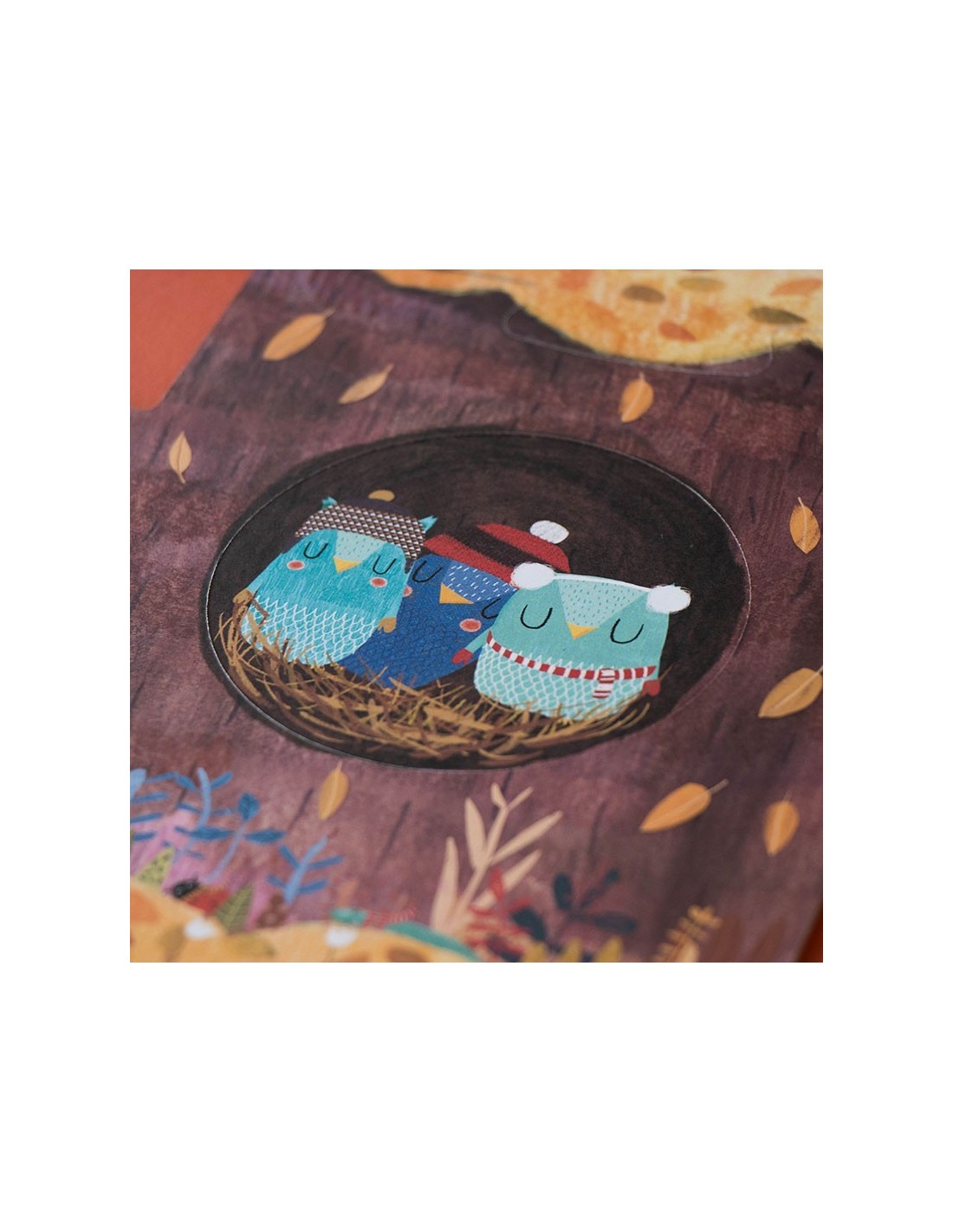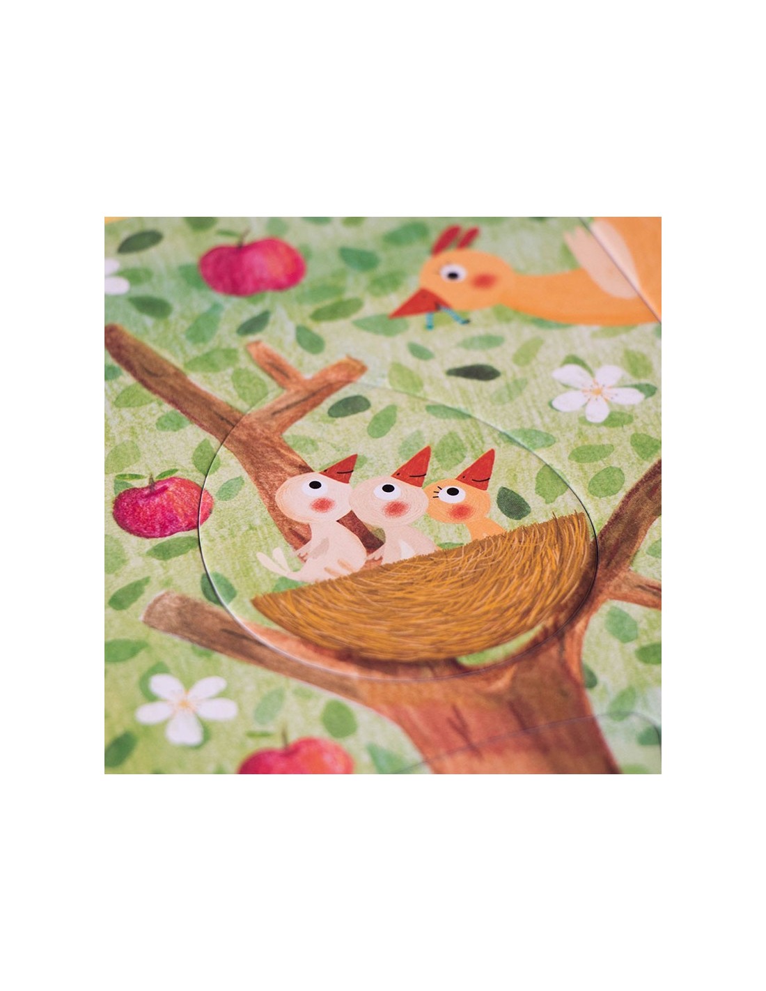Nuestro manzano en primavera acoge a una familia de ardillas, un nido con pequeños pájaros, un gato travieso y unos búhos juguetones. Bajo tierra ratones, conejos y topos se esconden dentro de sus madrigueras. En otoño ya hemos cosechado las dulces manzanas, descubre lo que hacen nuestros amigos hasta que vuelva el buen tiempo.