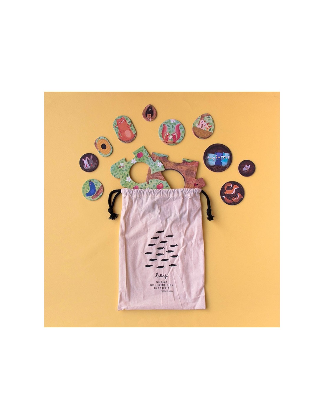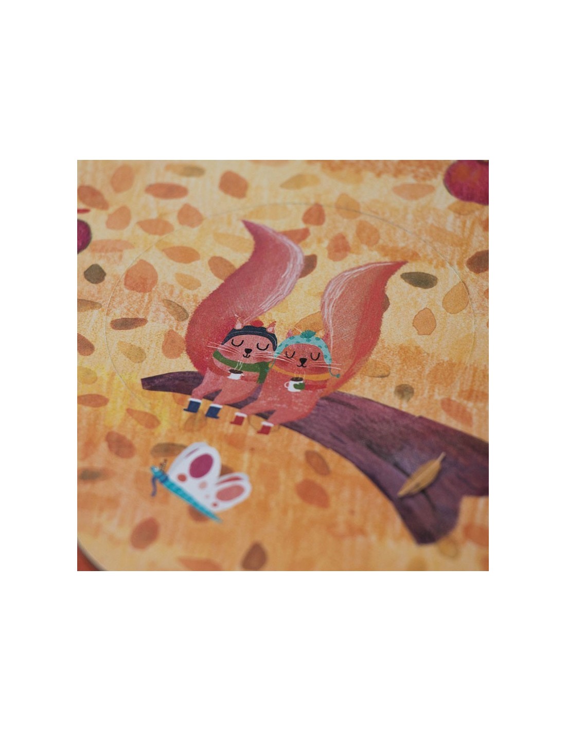 En una cara encontramos el primavera y en la otra el otoño. Una vez montado el árbol (10 piezas) el niño podrá ir encajando las piezas en el árbol (10 piezas), a la vez que va familiarizándose con los conceptos de cambio de estación y animales del bosque. Las piezas son muy grandes, pensadas para las manos pequeñas.