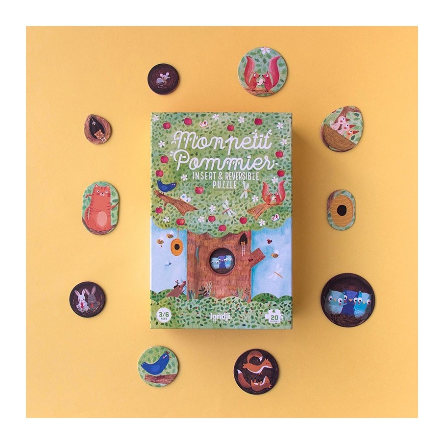 ¡Un puzzle reversible con un árbol como protagonista, observa cómo cambia la naturaleza de verano a invierno! Un puzzle de piezas grandes para manos pequeñas