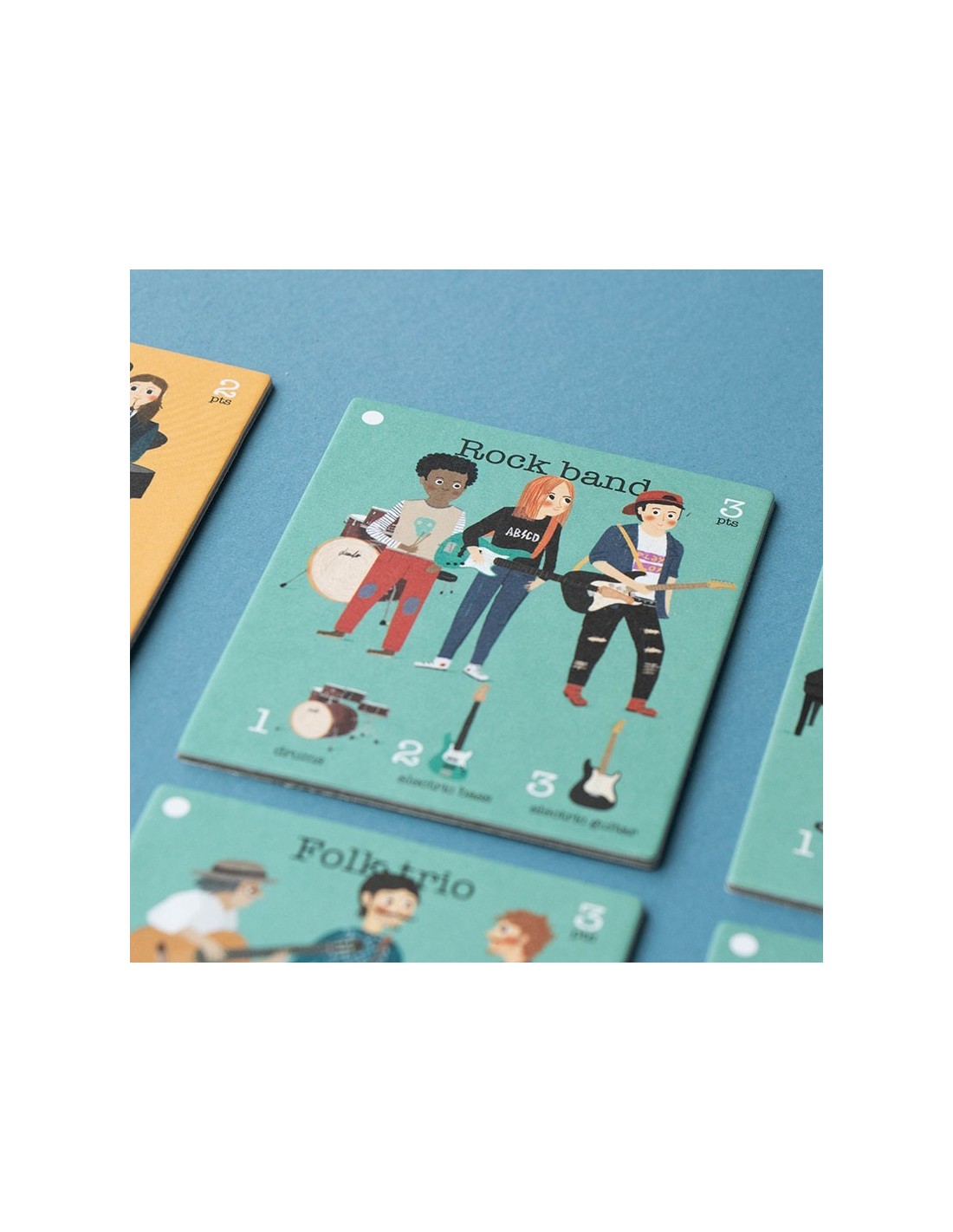 Un juego de memoria cuyo objetivo es completar el mayor número de grupos musicales. Para ello deberemos girar, en un mismo turno y sin equivocarnos, los instrumentos que forman parte del grupo.