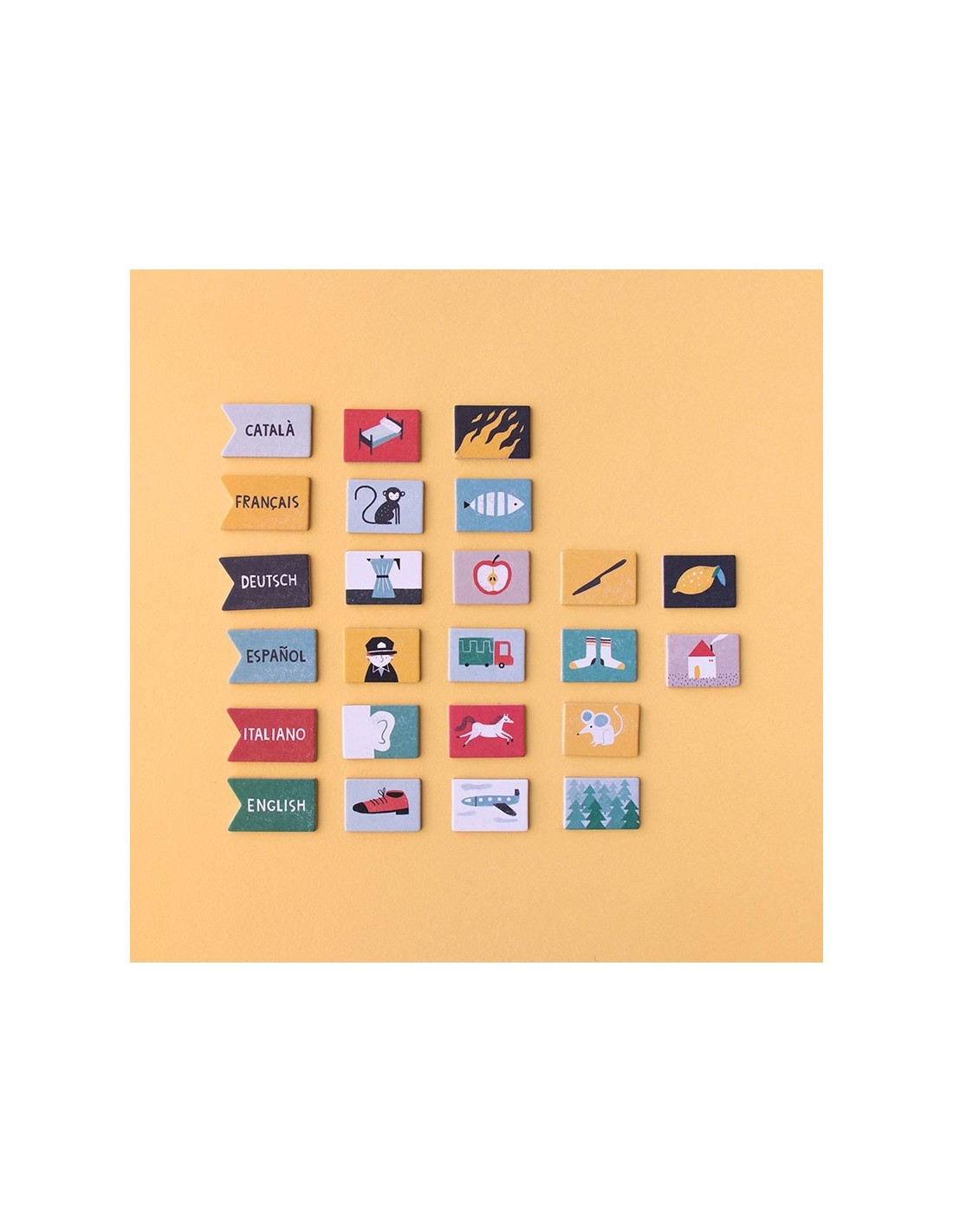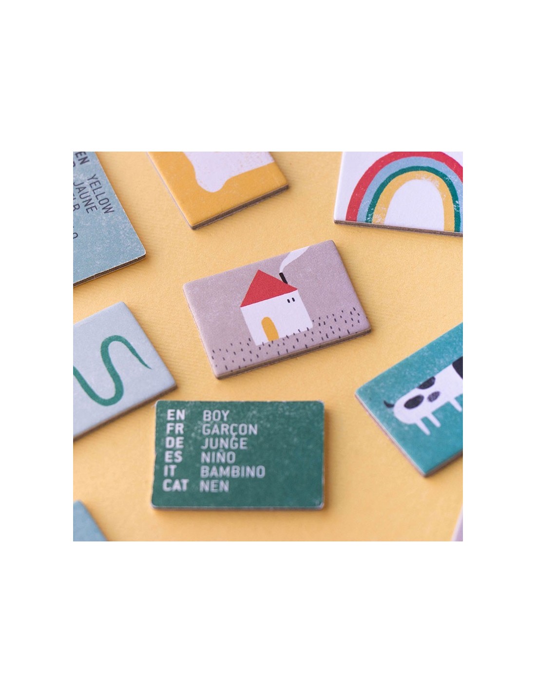 Aprende vocabulario en distintos idiomas con este juego de palabras con fichas ilustradas. ¡La mejor manera de aprender otras lenguas! Un juego familiar.