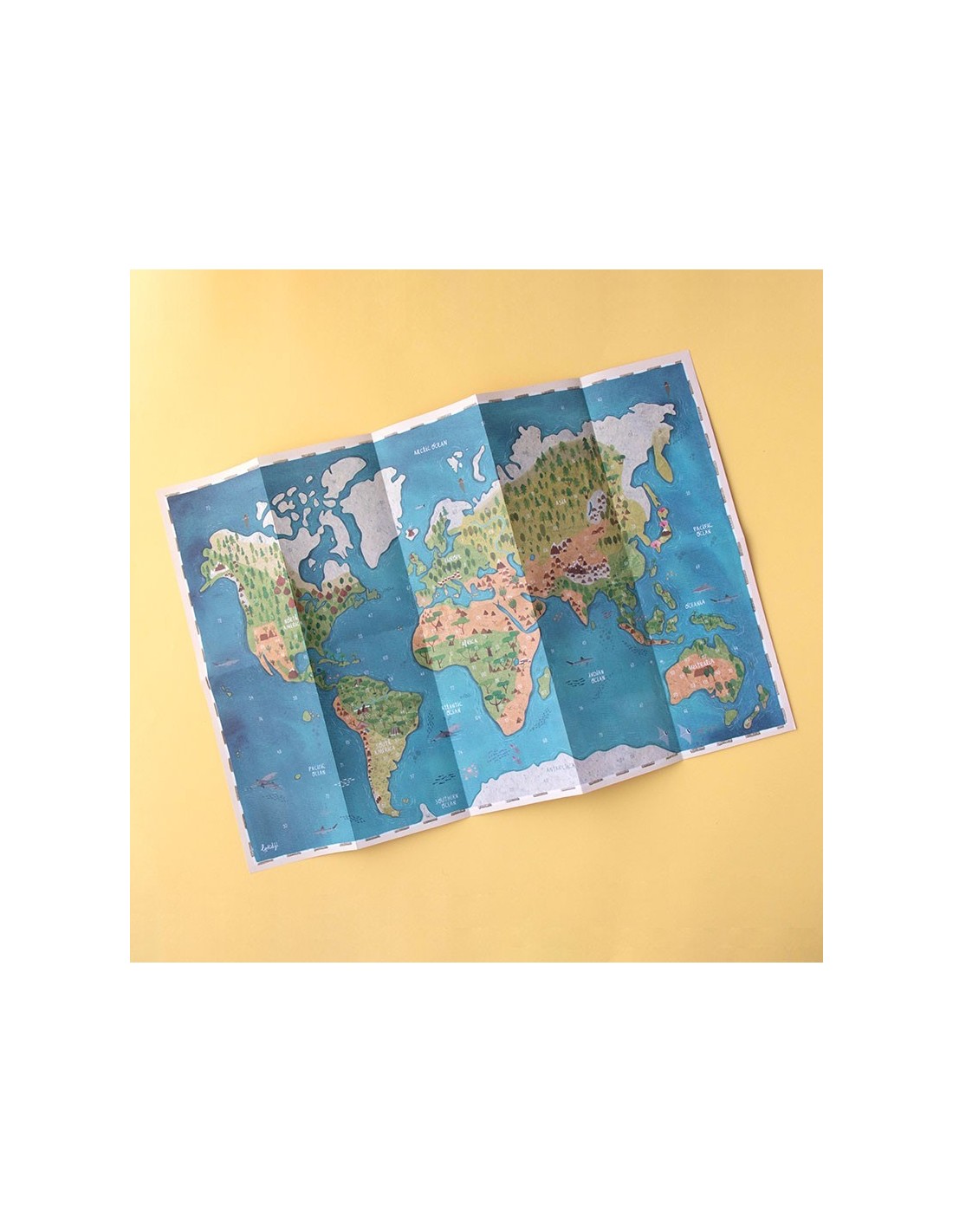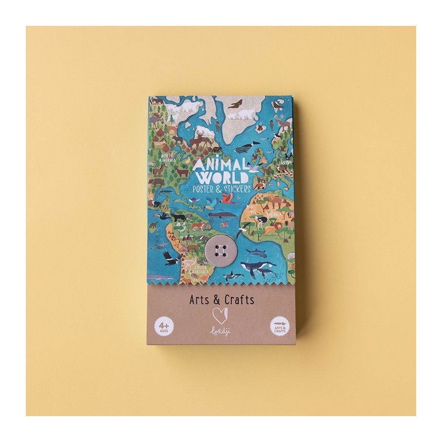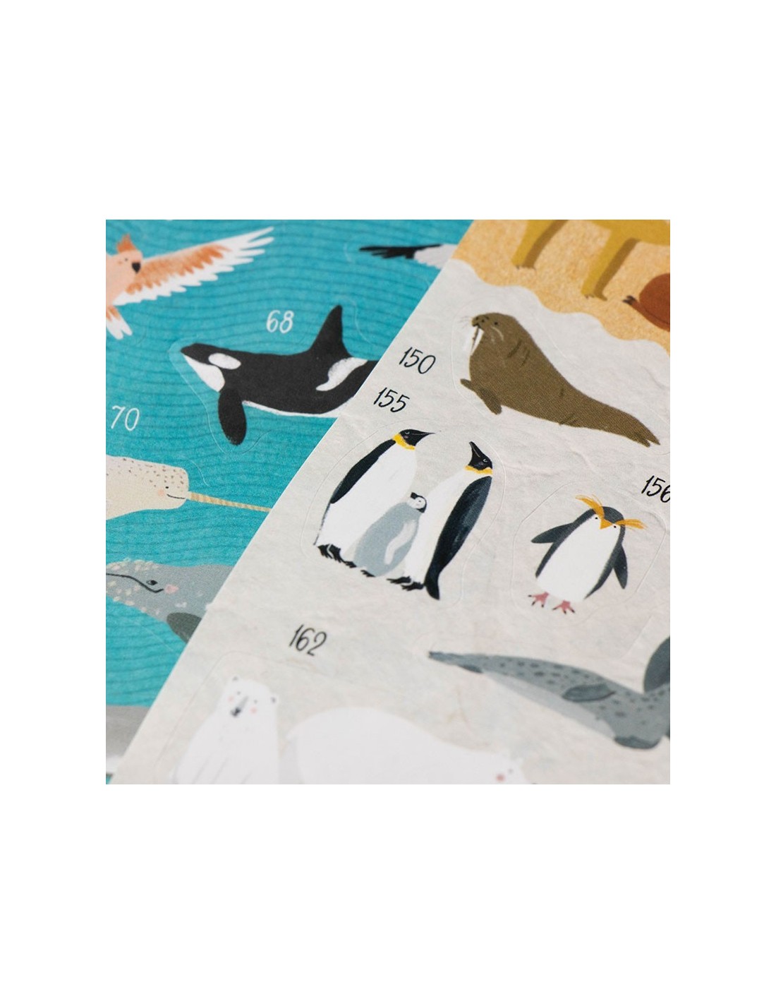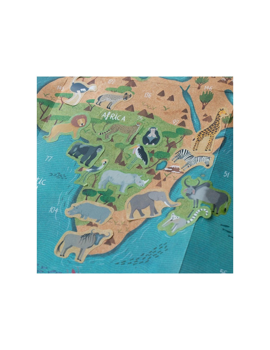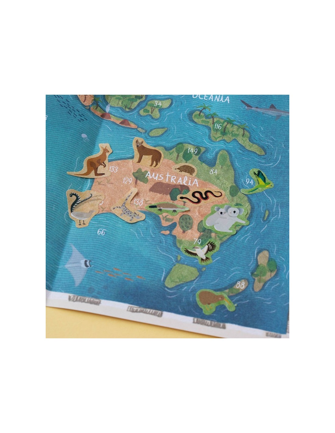 Una actividad con 165 pegatinas de animales y un póster del mapa mundial. ¡Un juego educativo para aprender mientras nos divertimos!
