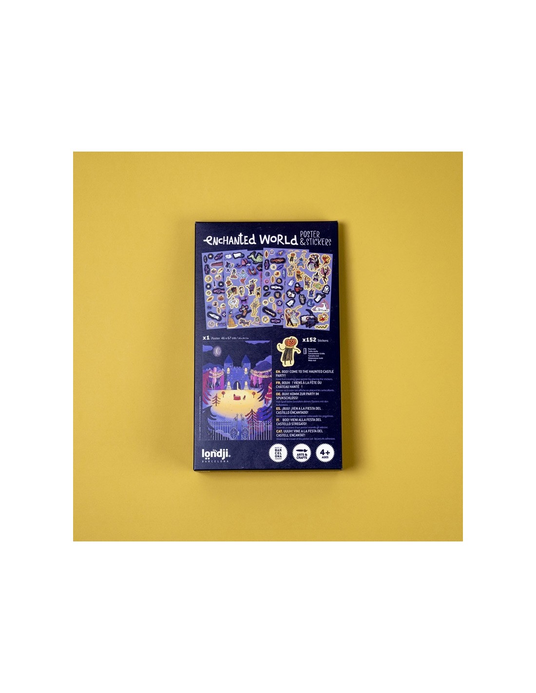 Una actividad de 152 pegatinas de monstruos y fantasmas y un póster del castillo encantado. ¡Un juego de colocar adhesivos muy divertido! Juego sostenible y de proximidad.