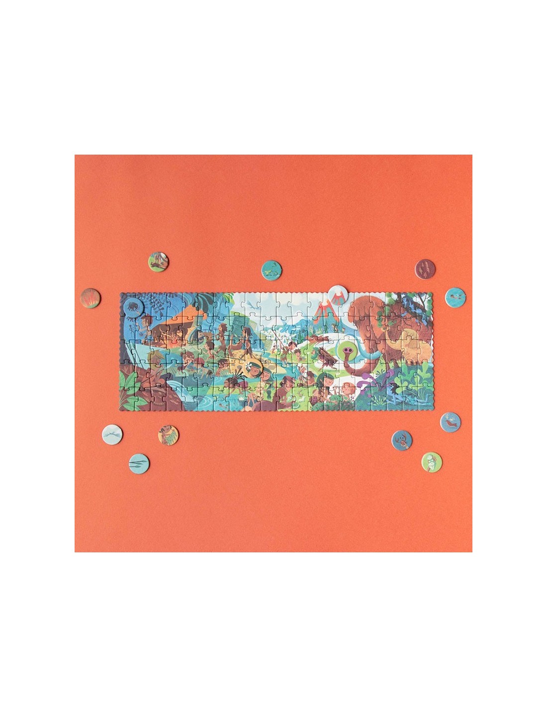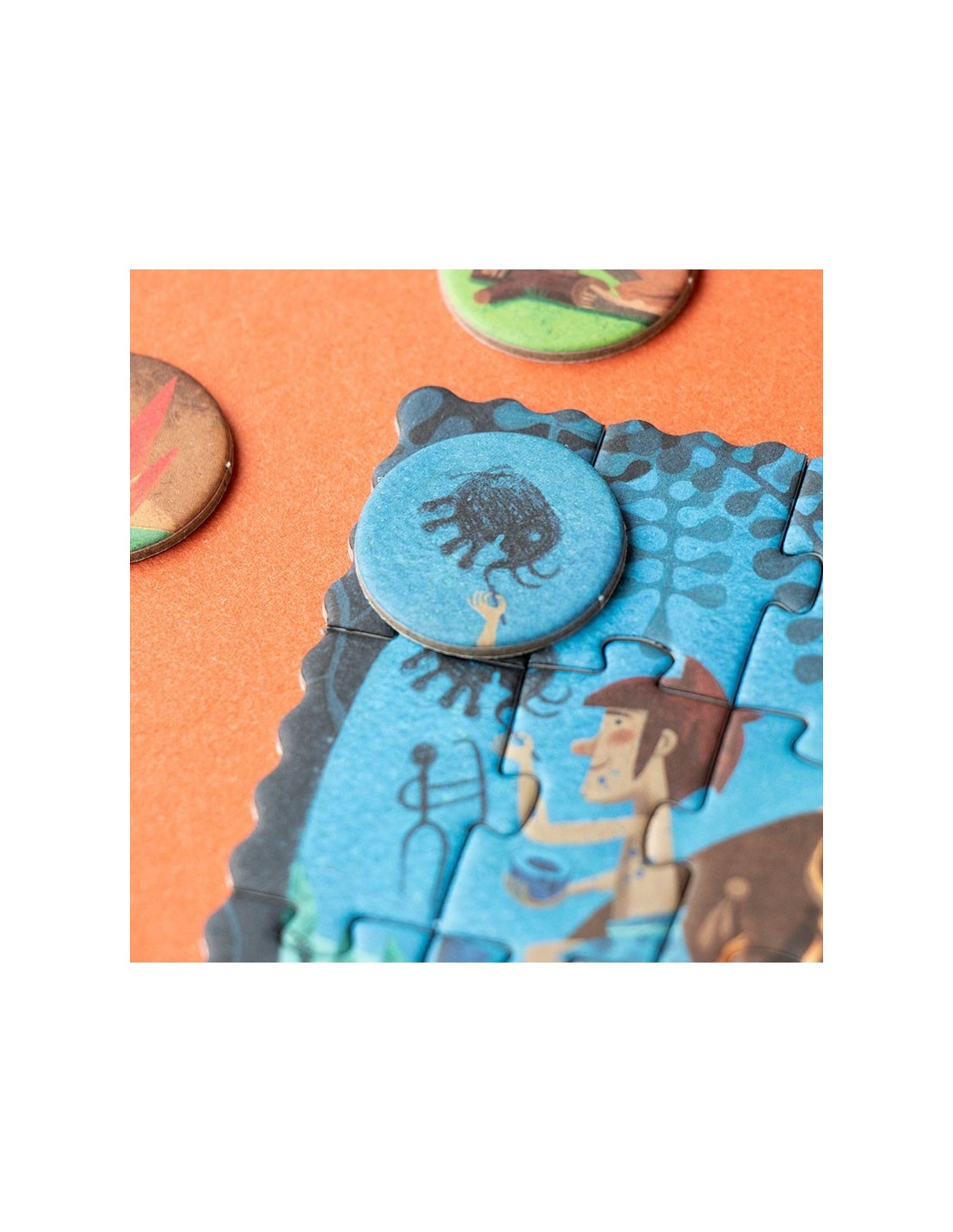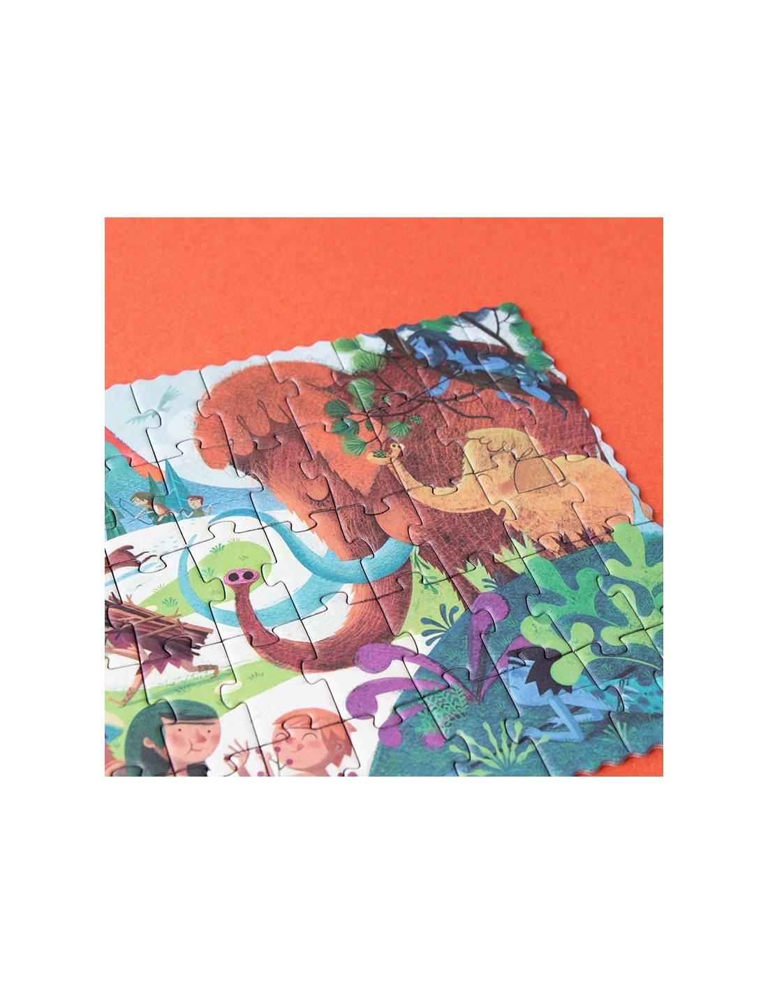 Un puzzle de 100 piezas y 16 fichas de observación sobre la prehistoria, para aprender historia mientras jugamos. En formato bolsillo, ideal para viajes.
