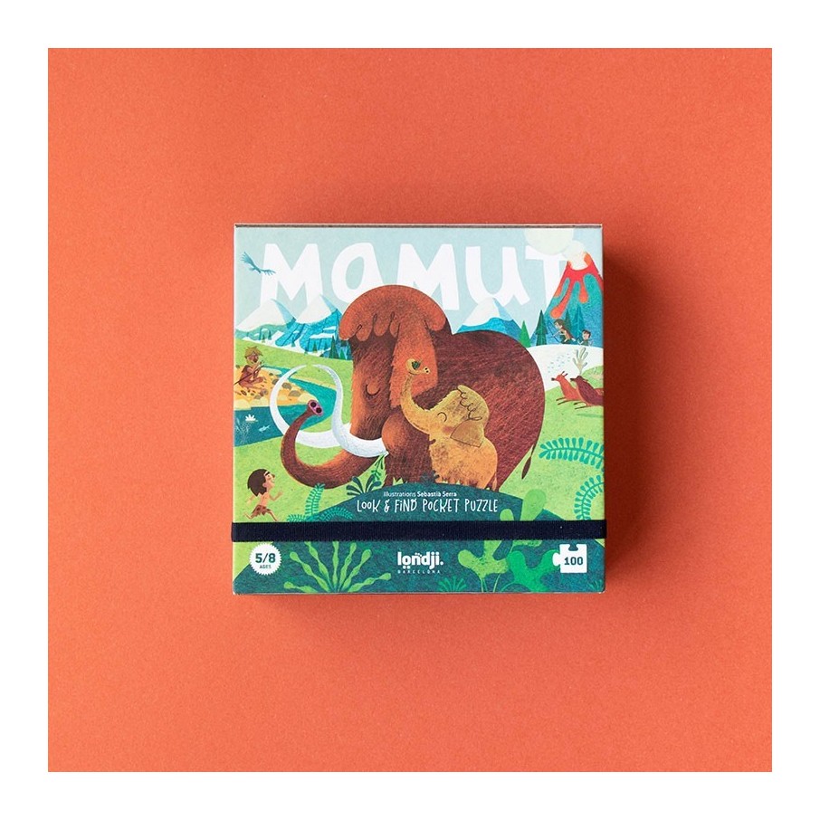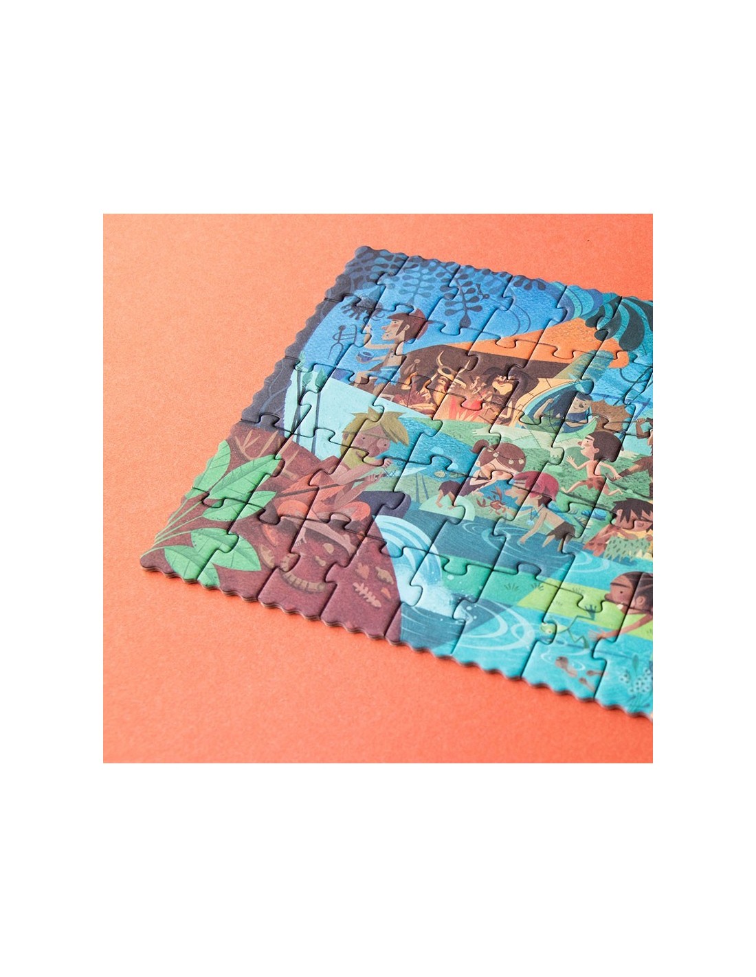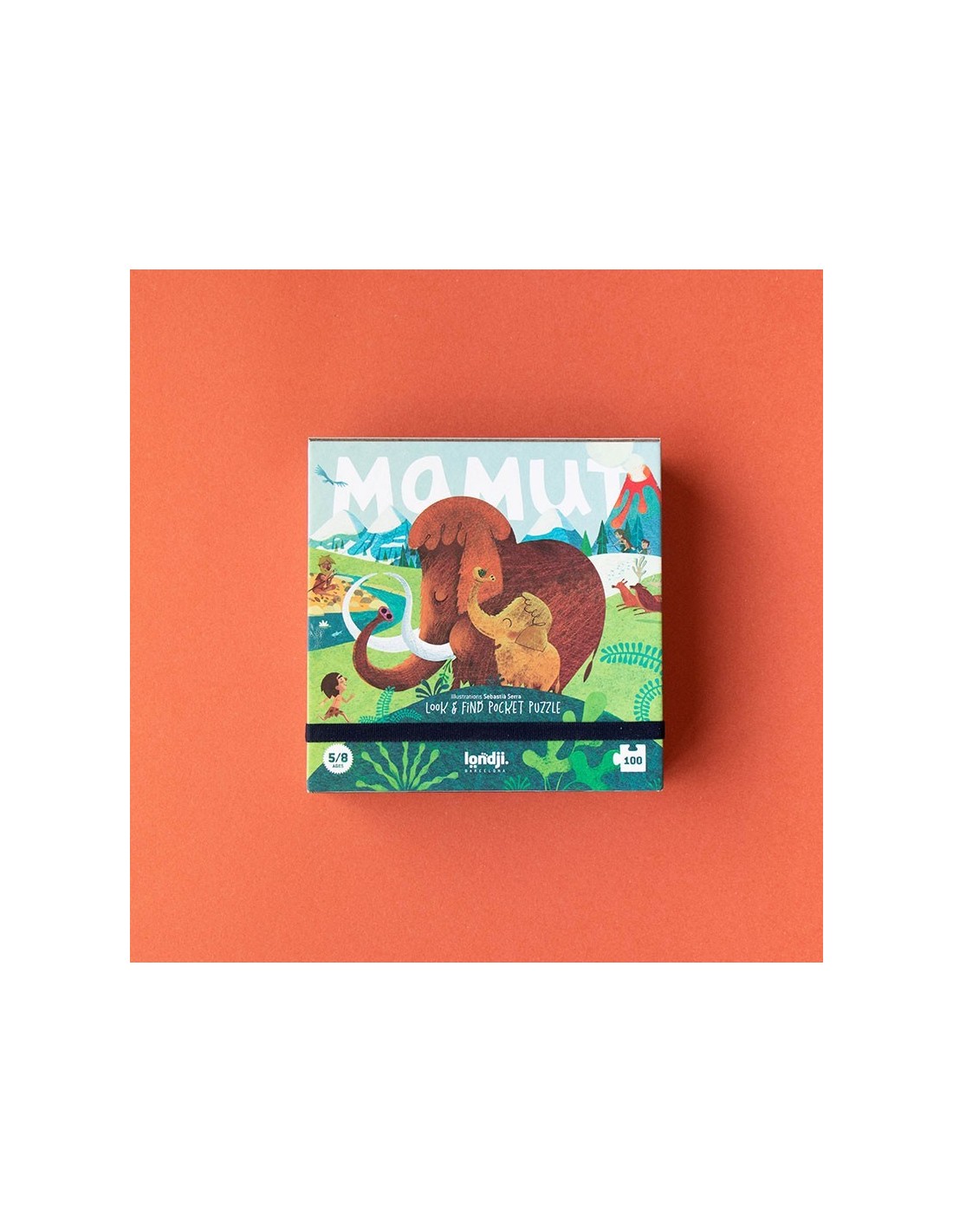 Un puzzle de 100 piezas y 16 fichas de observación sobre la prehistoria, para aprender historia mientras jugamos. En formato bolsillo, ideal para viajes.
